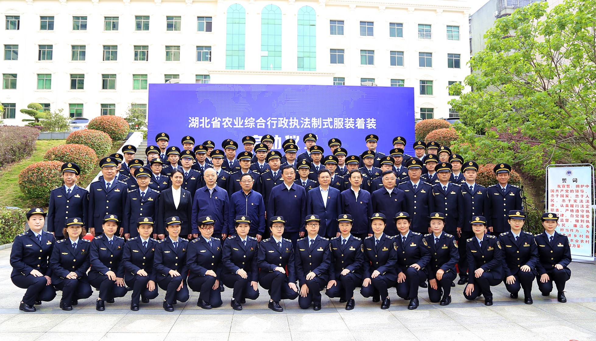 4月29日,湖北省农业农村厅举行农业综合行政执法制式服装着装启动仪式。在整齐的列队仪式和宣誓中,湖北省农业综合行政执法人员制式服装正式亮相。