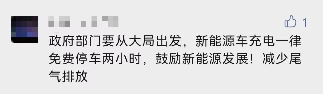 网友:希望新能源车充电免费停车两小时
