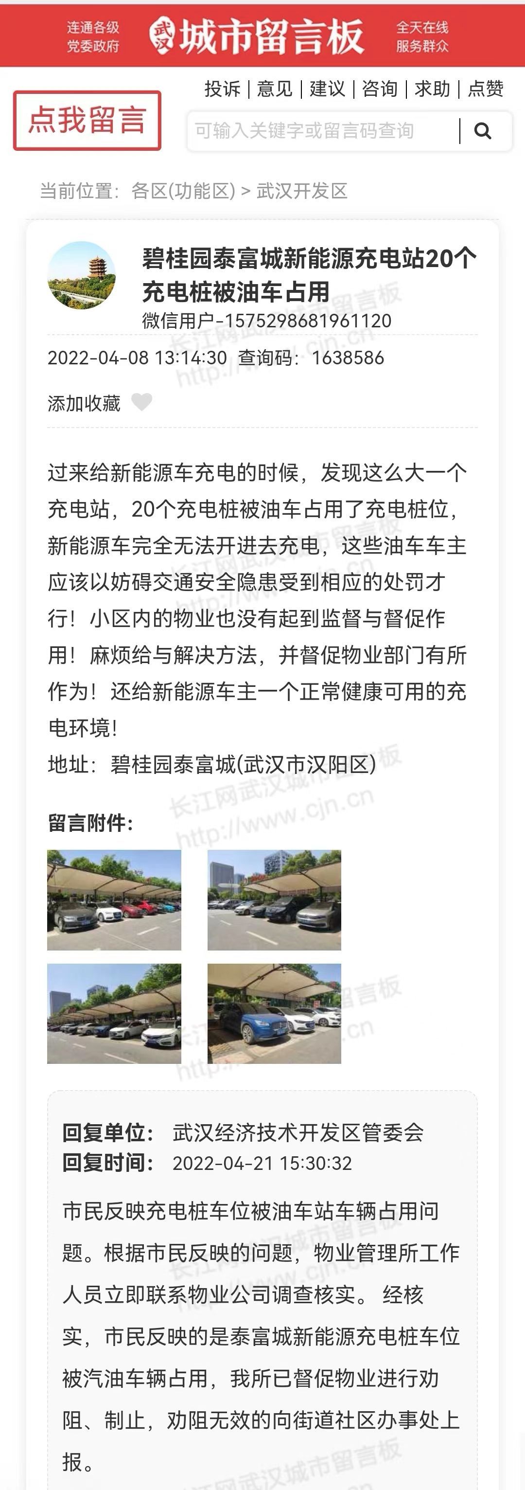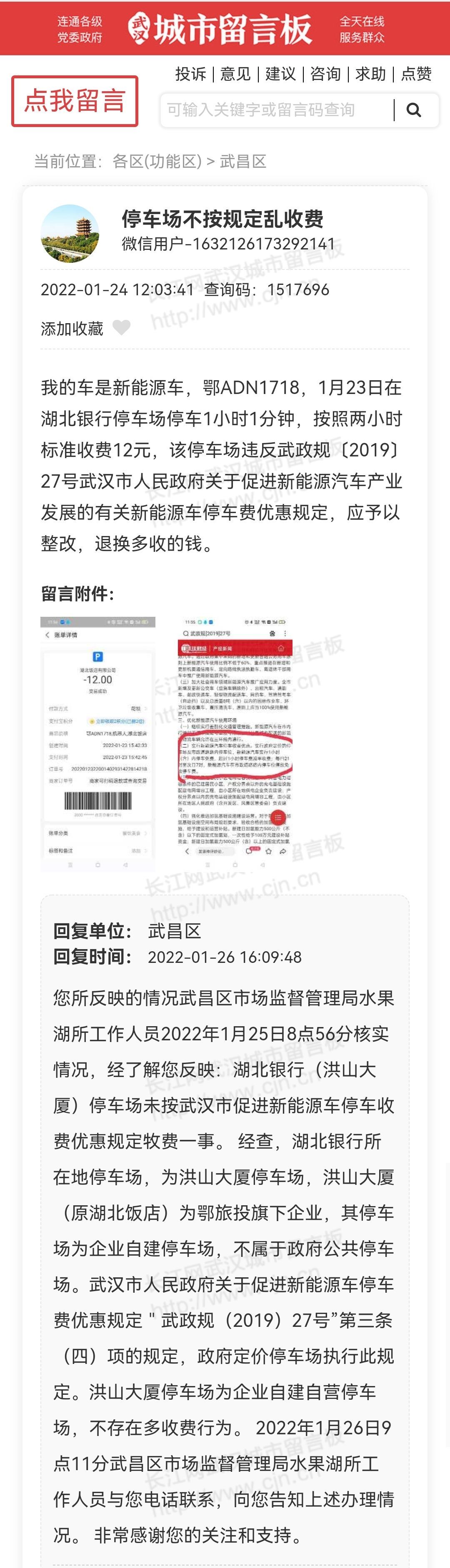 在武汉城市留言板上反映