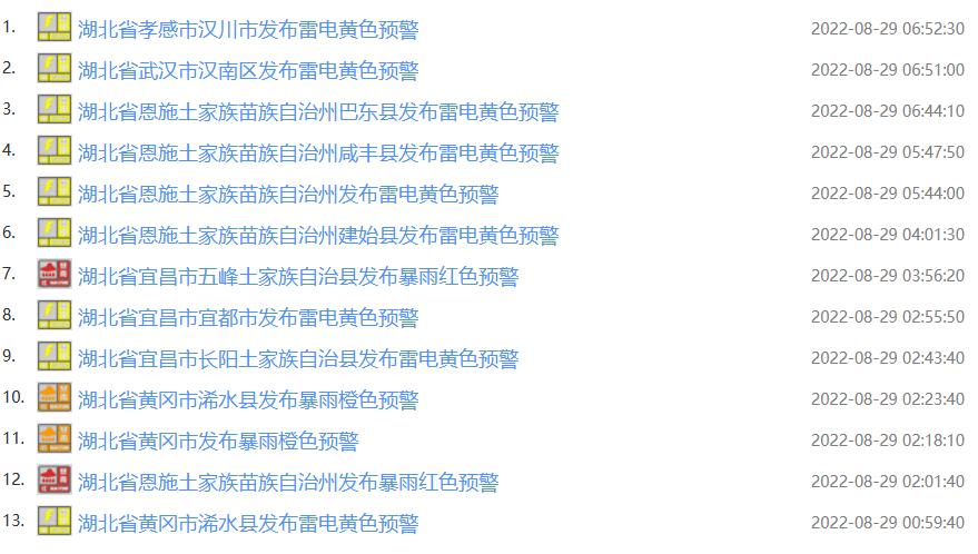 今早湖北多地发布雷电黄色预警信号:预计未来6小时,将有雷电活动,局部雨量20-30毫米,阵风5-7级,请注意防范。