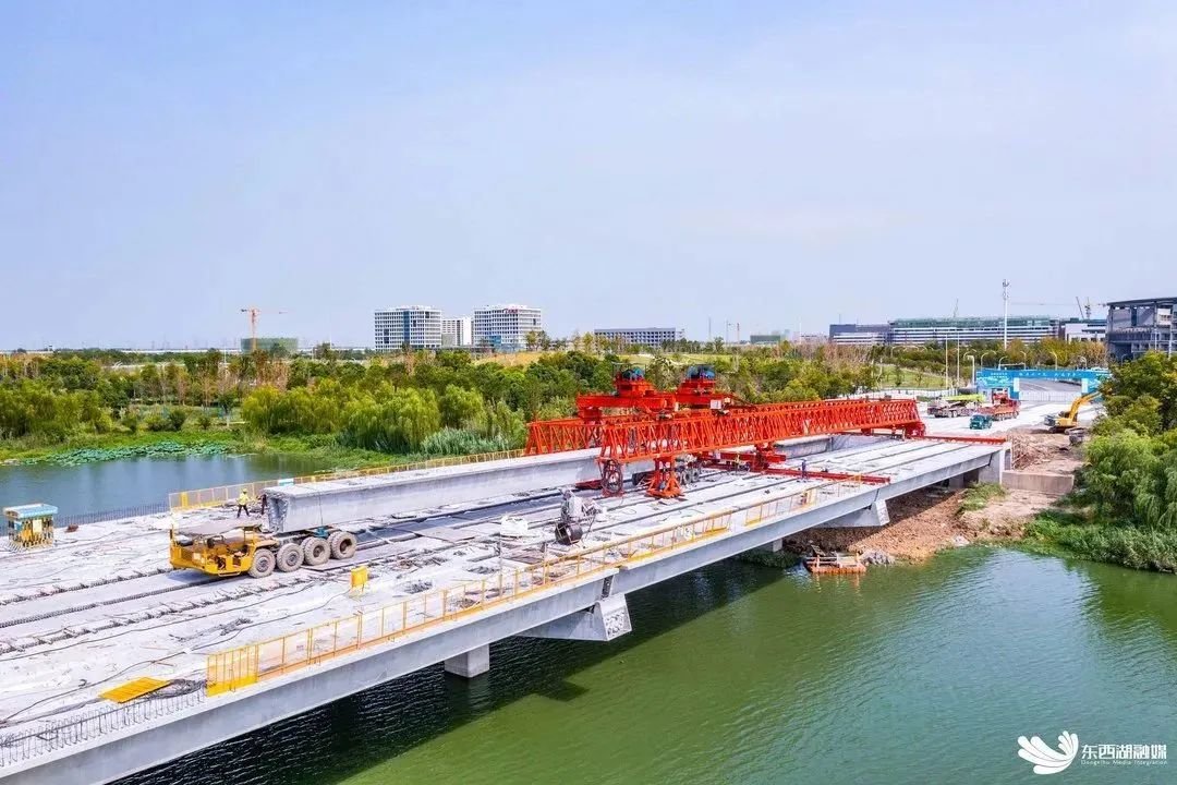 共享桥项目总工程师薛利凯介绍,大桥主体全线贯通后,剩余的桥面铺装和人行道、护栏等配套建设,力争在9月30日前,在确保安全和质量前提下完成交工。“共享路跨径河桥建成通车后,国家网安学院师生可经该桥快速到达轨道交通一号线径河站,相比以往绕行路线,可节省至少20分钟时间。”