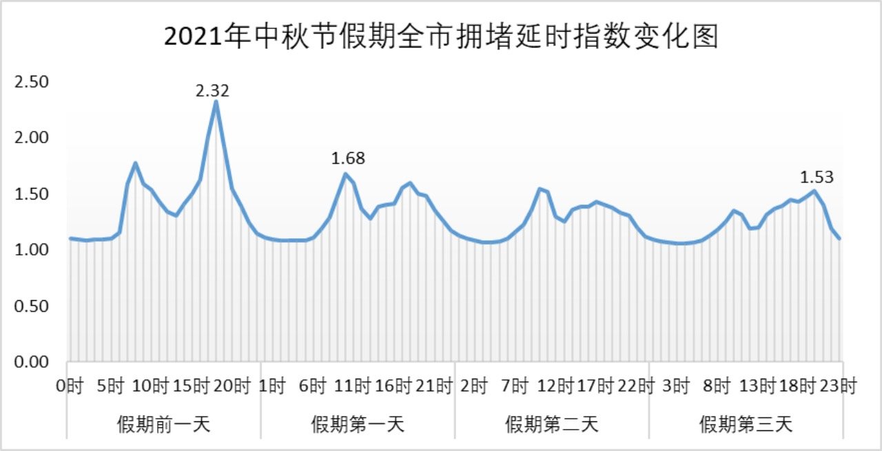 假期前一日因车流增多,市内道路交通压力增大,易出现长时间拥堵。