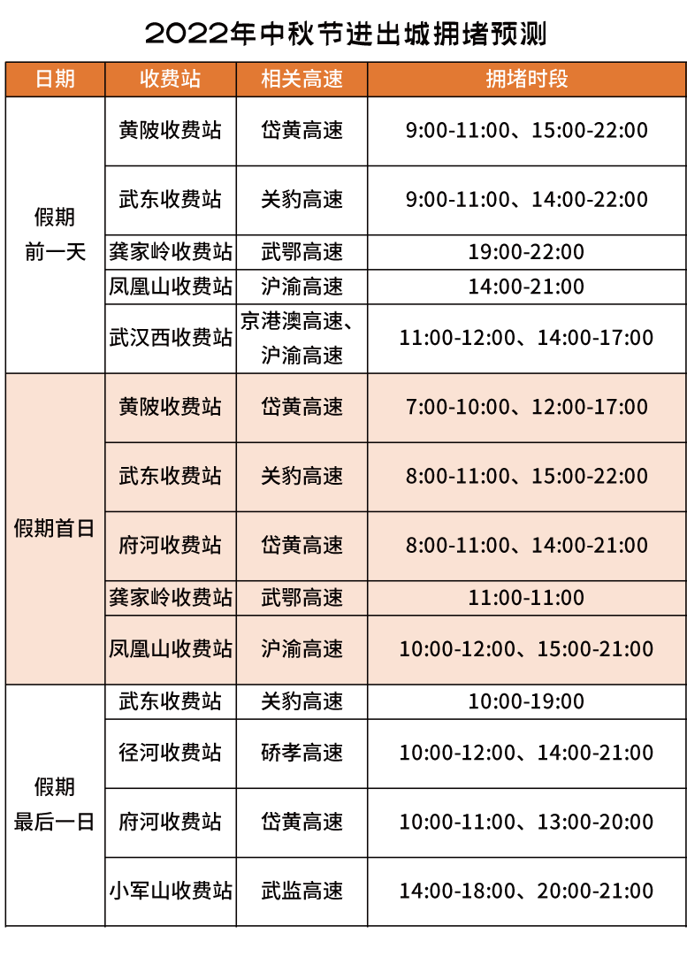 中秋节假期因进出城车流增加,收费站及进出城通道易出现车流缓行现象。