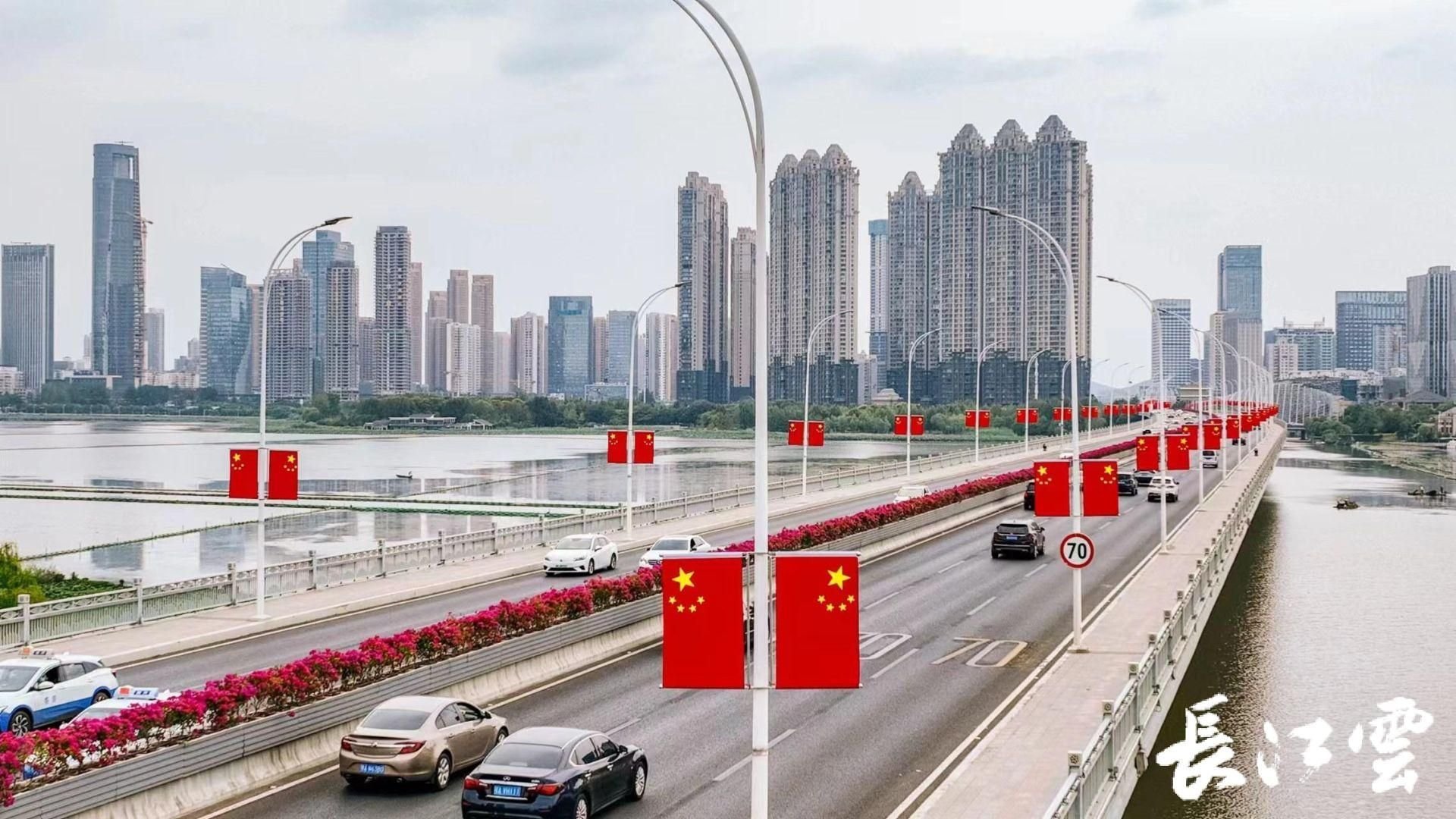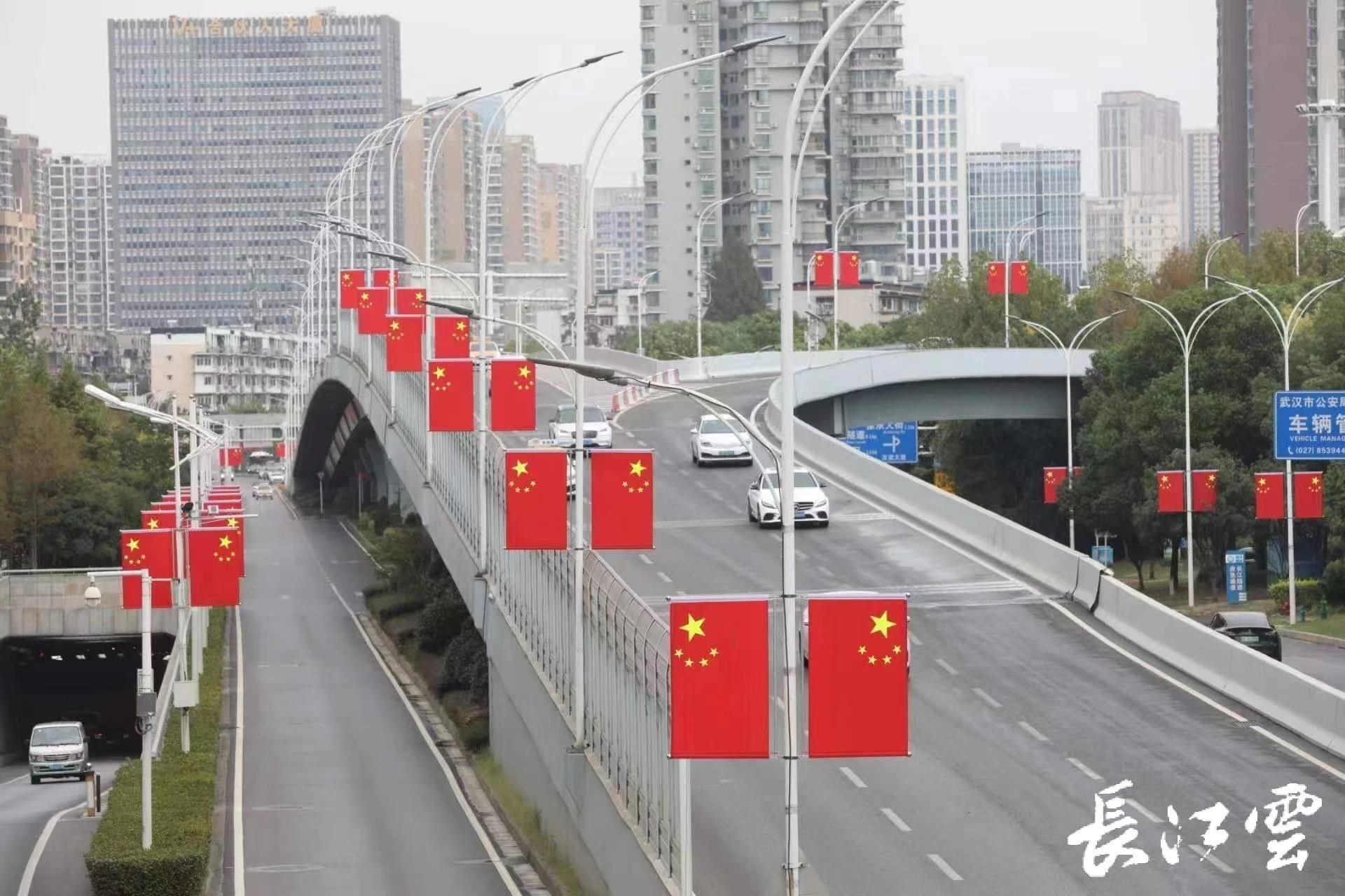 据悉,9月28日之前,武珞路、中南路、中北路等22条道路以及长江大桥、长江二桥、鹦鹉洲大桥、沙湖桥4座桥梁两旁,将会升起面面崭新的“中国红”,迎接国庆佳节的到来。