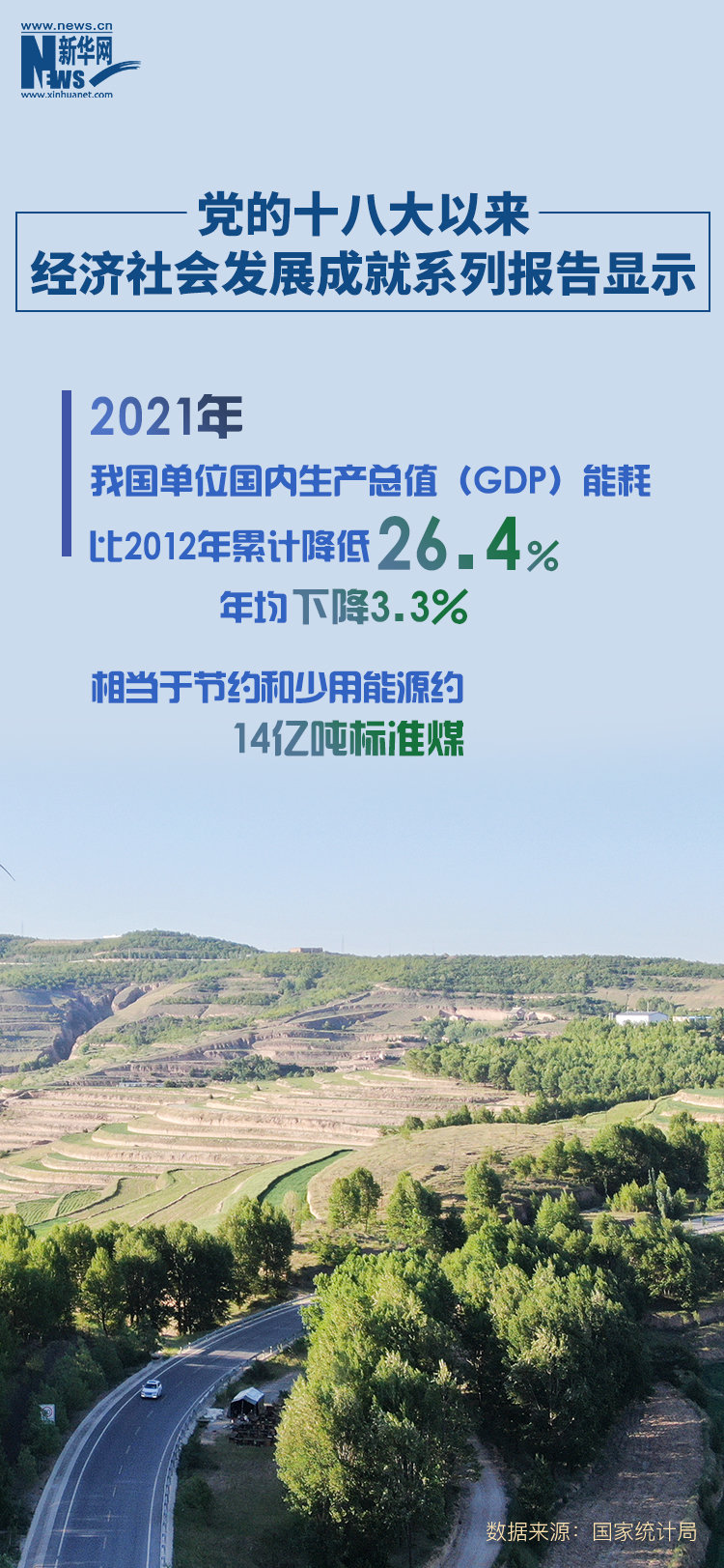 新华社北京10月8日电(记者魏玉坤)国家统计局8日发布的党的十八大以来经济社会发展成就系列报告显示,2021年,我国单位国内生产总值(GDP)能耗比2012年累计降低26.4%,年均下降3.3%,相当于节约和少用能源约14亿吨标准煤。