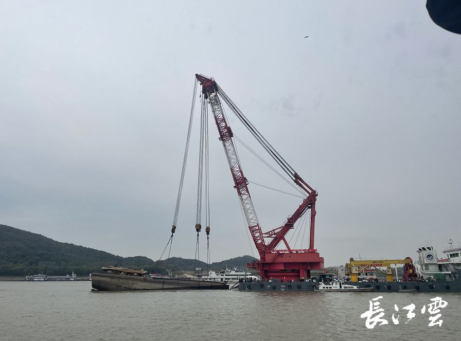 今年起,受“汛期反枯”特殊水文年影响,长江中下游提前进入枯水期,“二航9566”碍航风险进一步凸显。为尽快消除沉船威胁,经扫测定位、水下探摸、方案审查,9月8日起,长江航道局调遣1000吨起重船“长天龙”、“救捞测301”、“航勘201”、“长救绞3”等船艇设备和专业潜水员进驻现场,正式启动沉船应急抢险打捞施工。
