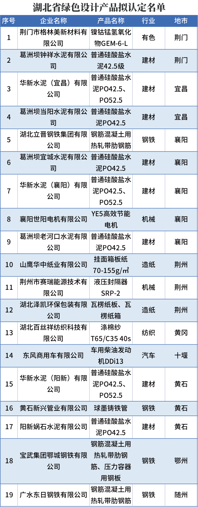 日前,湖北省经济和信息化厅发布《2022年湖北省绿色制造名单公示》,拟将一批湖北企业列入2022年省级绿色制造名单(绿色工厂、绿色设计产品、绿色工业园区、绿色供应链管理企业),接受社会监督。