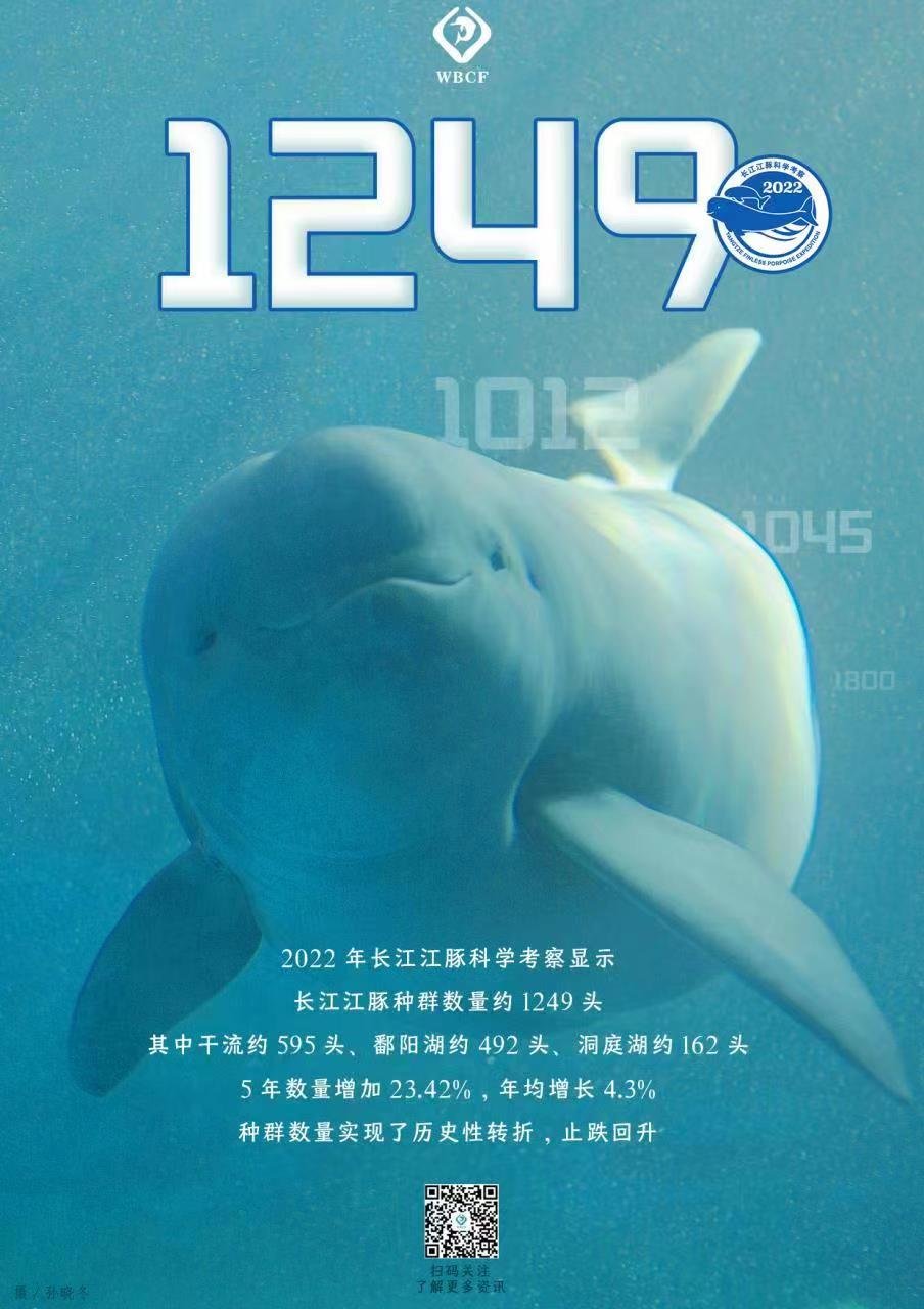 去年9月,农业农村部组织开展了2022年全流域长江江豚科学考察。作为长江全面禁捕后首次流域性物种系统调查,中国科学院水生生物研究所的科研人员全程参与其中,对相关数据进行汇总分析。农业农村部2月28日公布的最新数据显示,目前我国长江江豚种群数量回升至1249头。