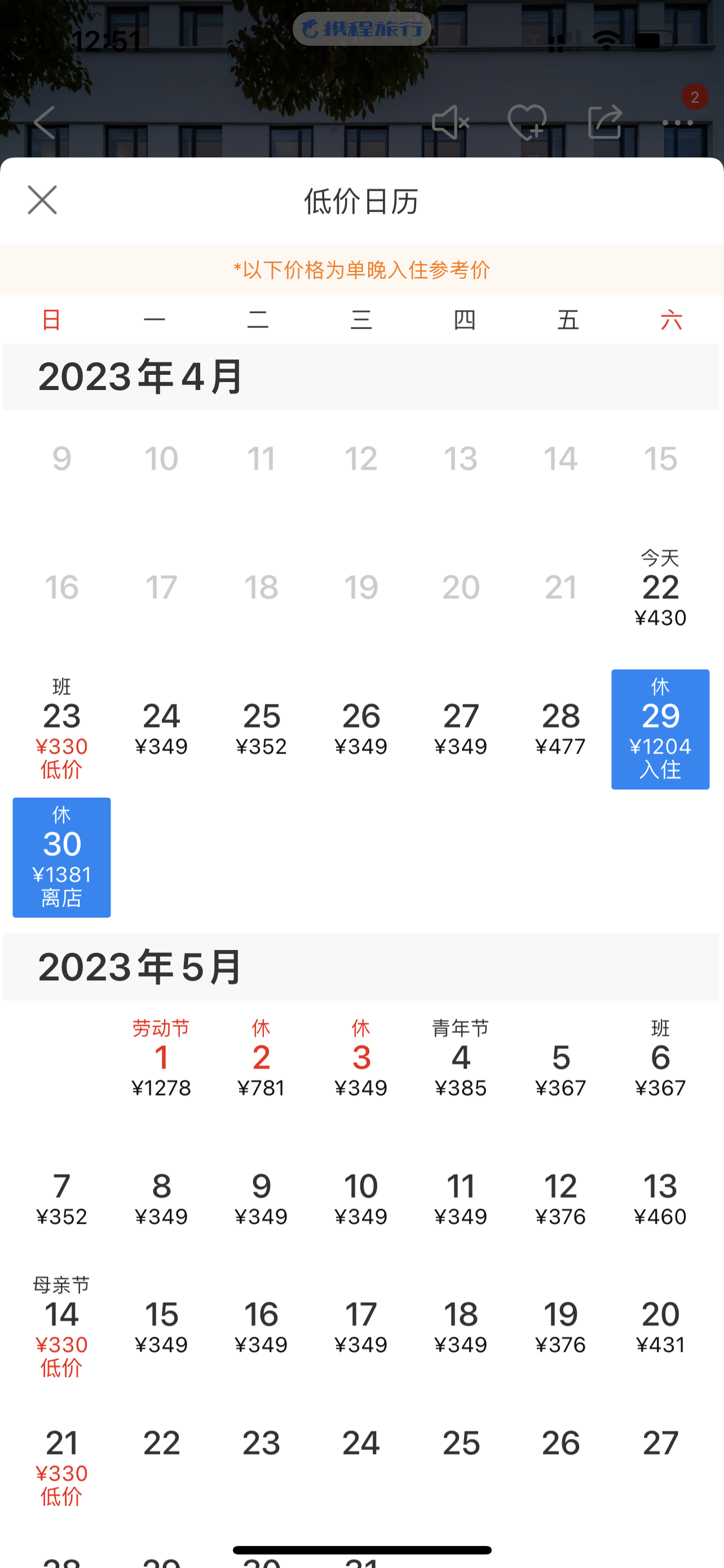 以苏州观前街附近的酒店为例,平日最低房价约350元/晚的某连锁酒店4月29日最低入住价格为1204元/晚,是平日价格的3.44倍;4月30日的入住价格为1381元/晚,是平日价格的约3.9倍。