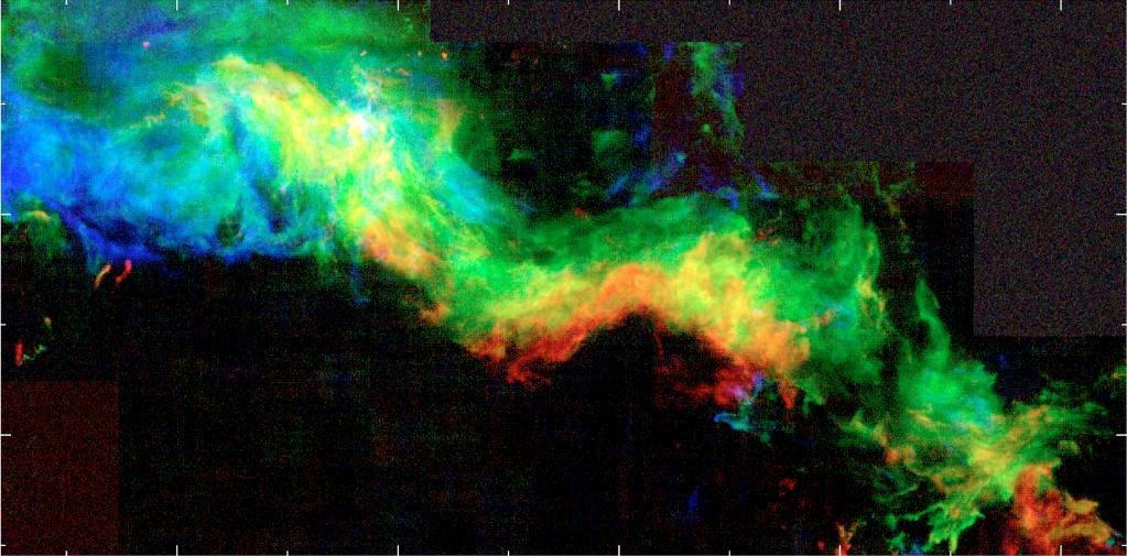 中国科学院紫金山天文台2020年4月宣布,该台“银河画卷”巡天计划科研团队在银河系中发现两个孕育恒星的巨大分子云,并将其命名为“大江分子云”和“凤凰分子云”。图为“大江分子云”。新华社发