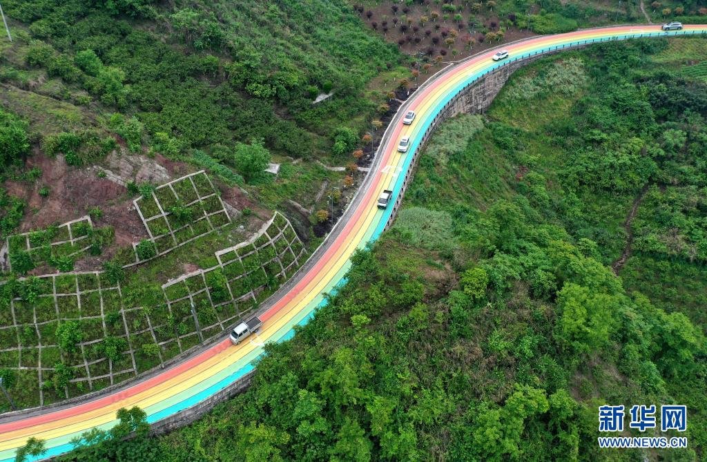 5月4日,车辆行驶在湖北省宣恩县城郊彩色“音乐公路”上。