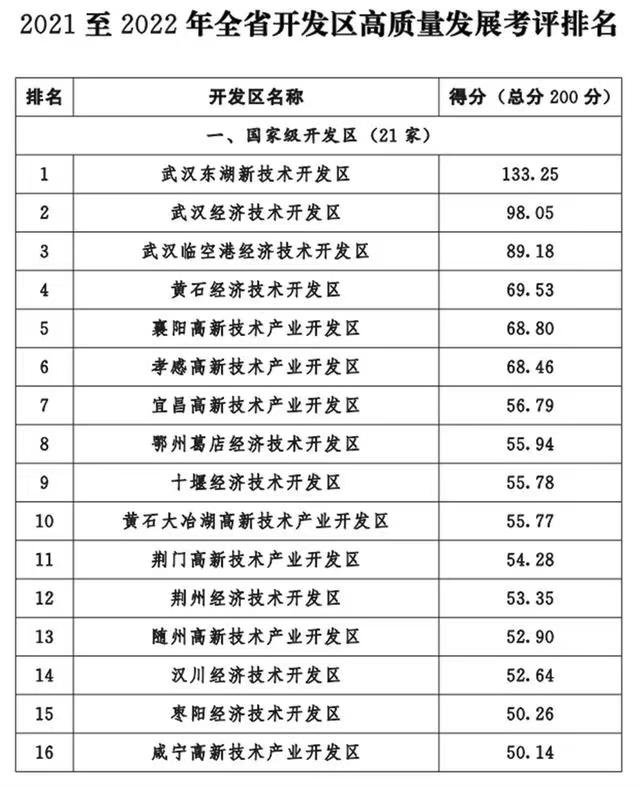 近日,湖北省政府发布《关于2021至2022年全省开发区高质量发展考评情况的通报》,对全省的国家级和省级开发区进行综合考评。黄石经济技术开发区在国家级开发区考评排名中位列第四。