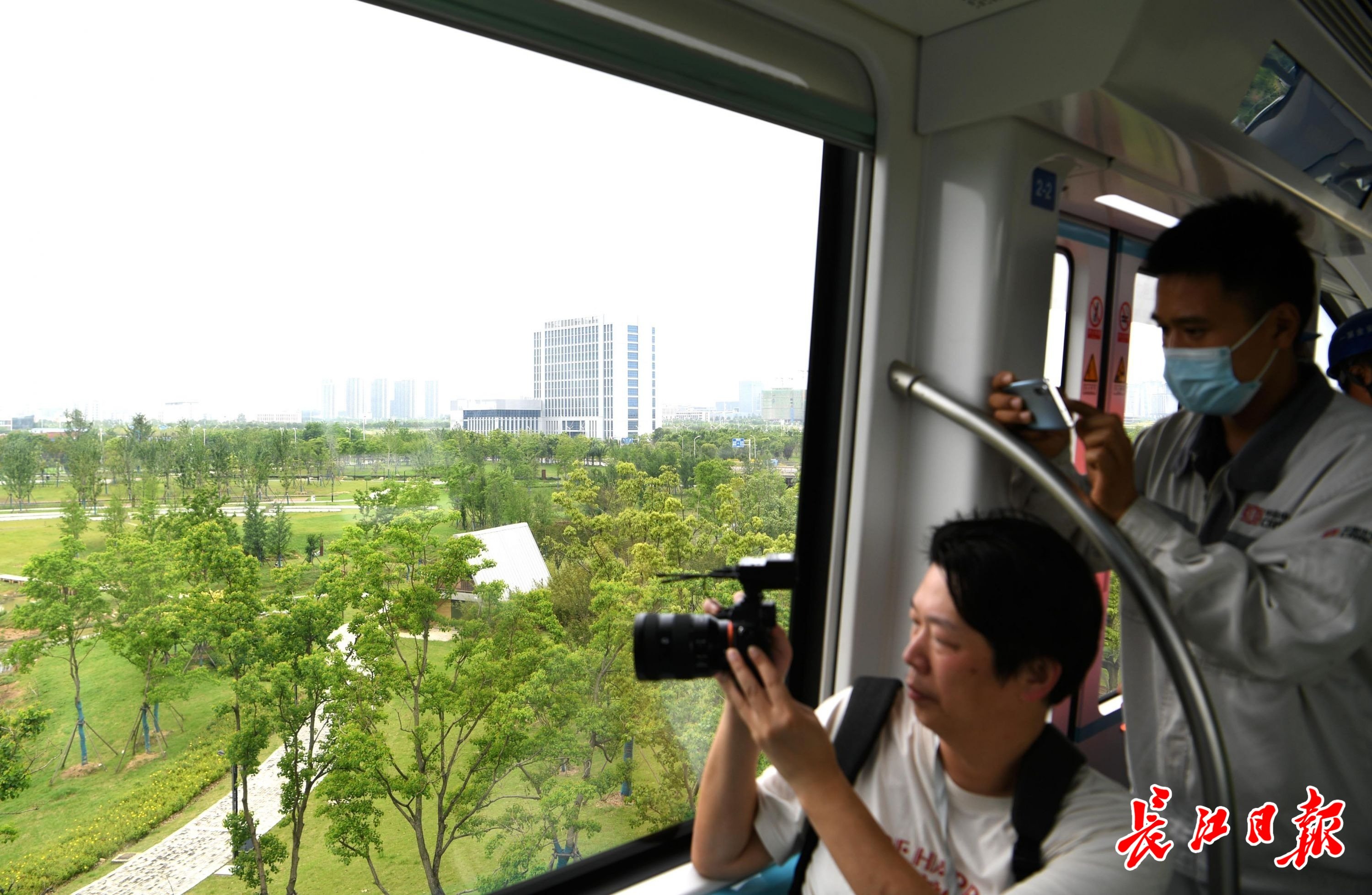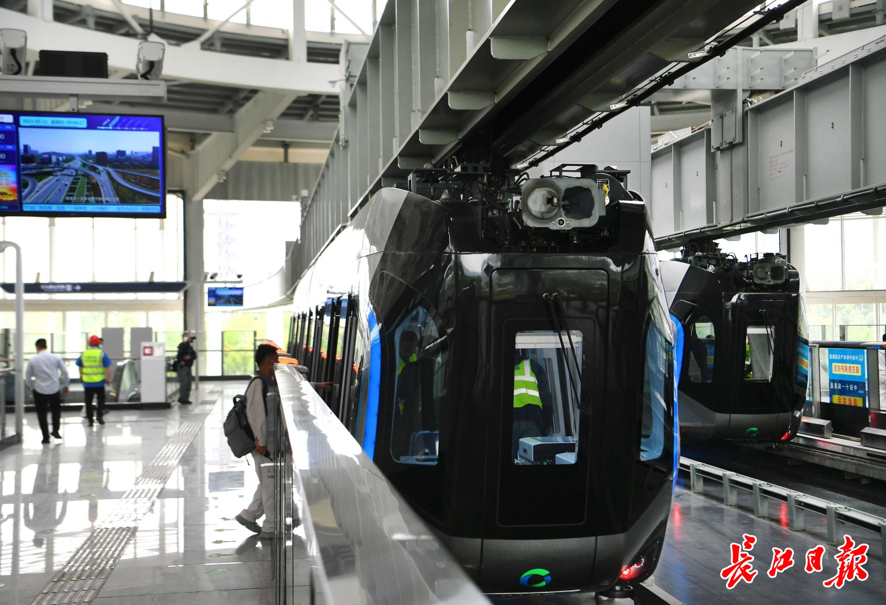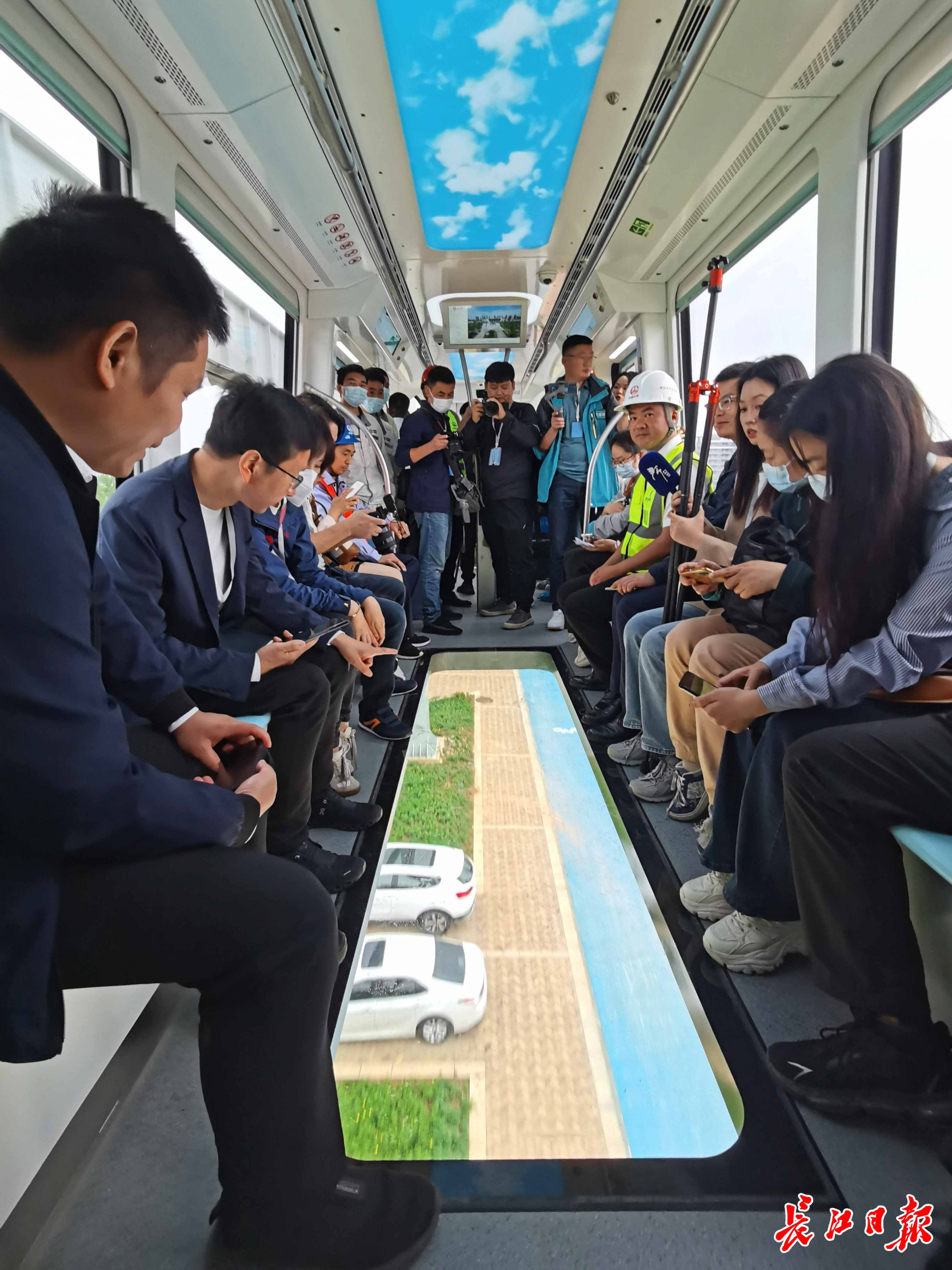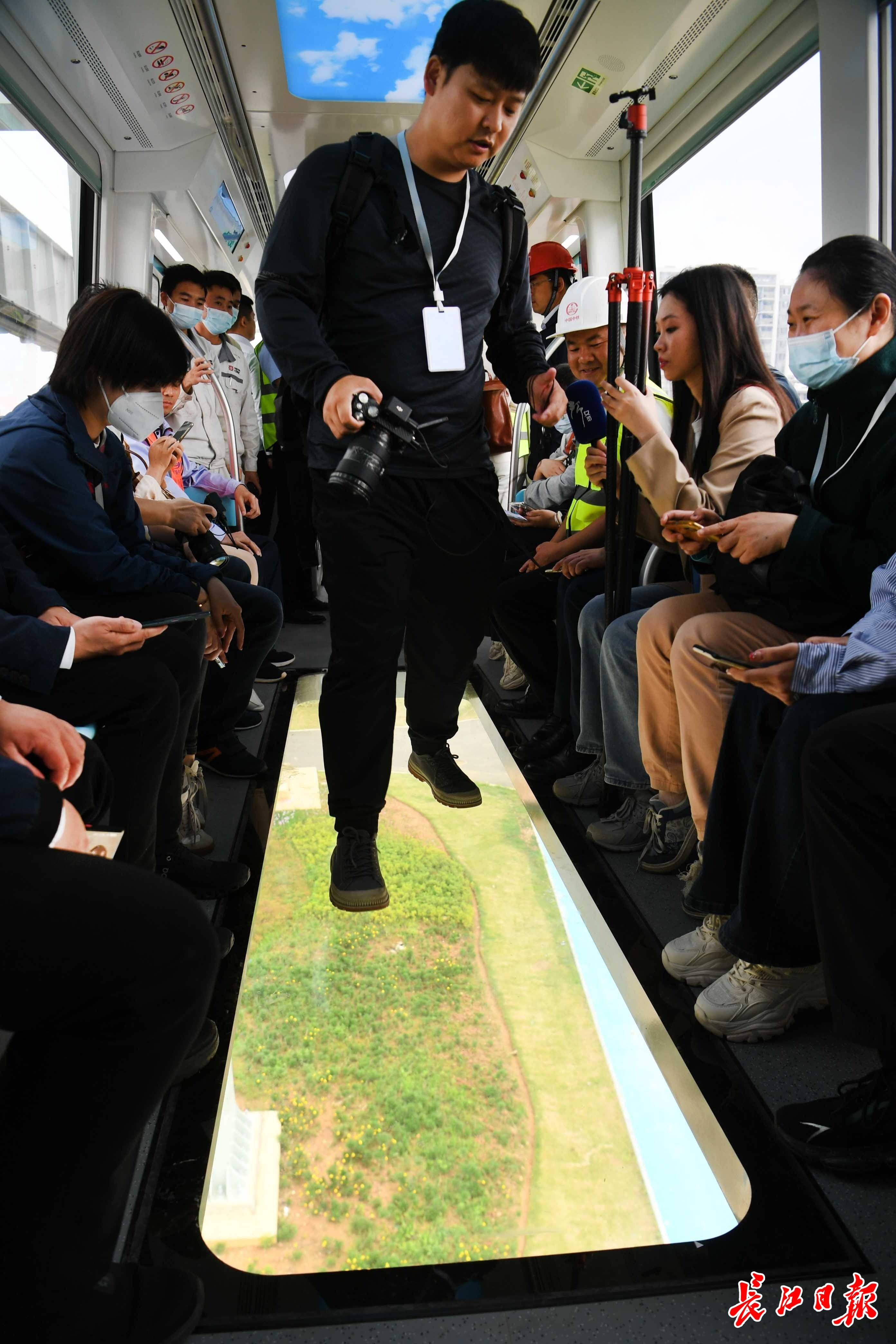 长江日报大武汉客户端5月11日讯 5月11日,光谷空轨举行媒体集中探访和试乘活动,长江日报记者在高新大道站经过安检票检一体的闸机与安检门,乘上全自动无人驾驶、充满科幻色彩的“光谷光子号”空轨,感受光谷的日新月异。