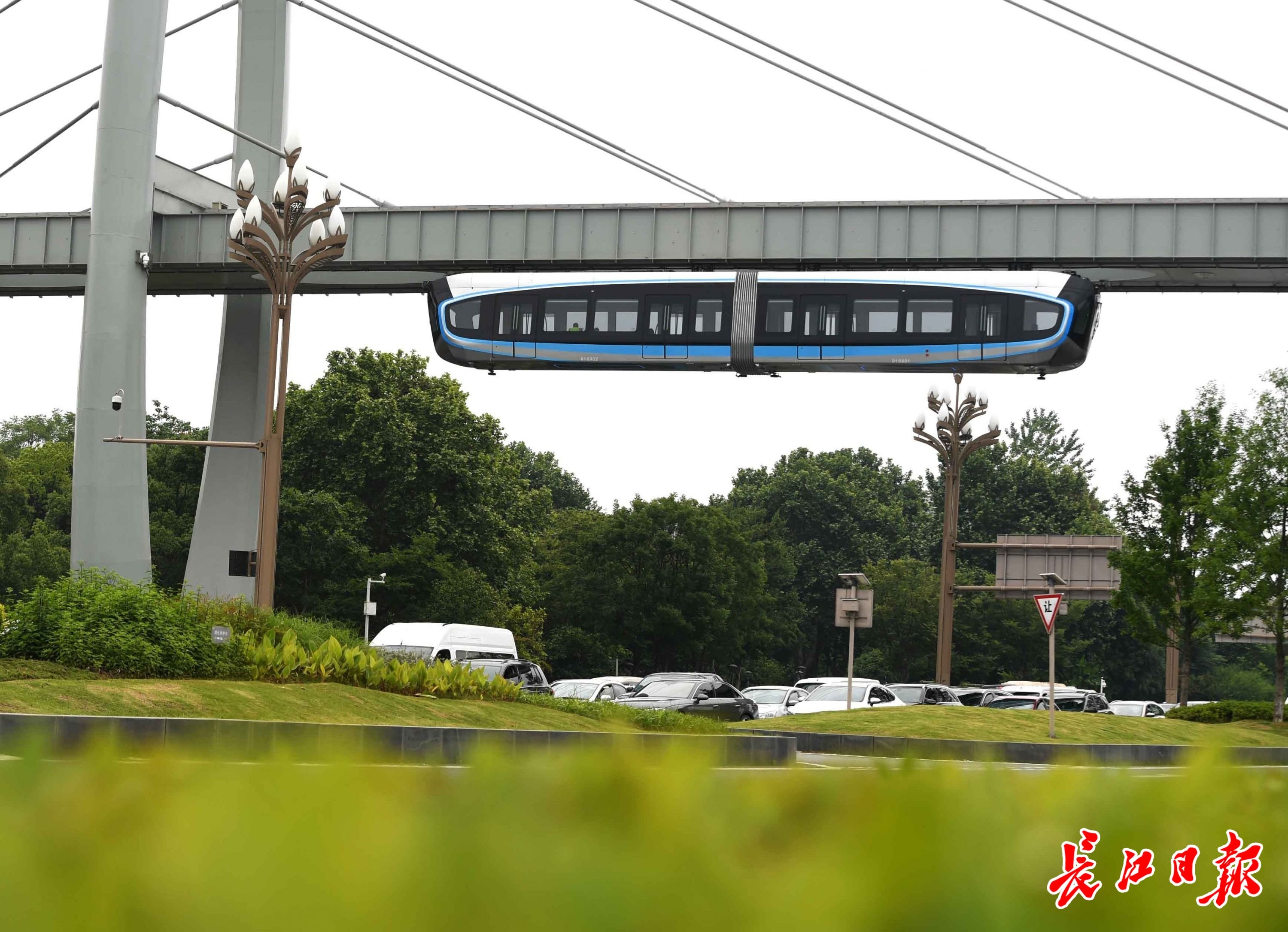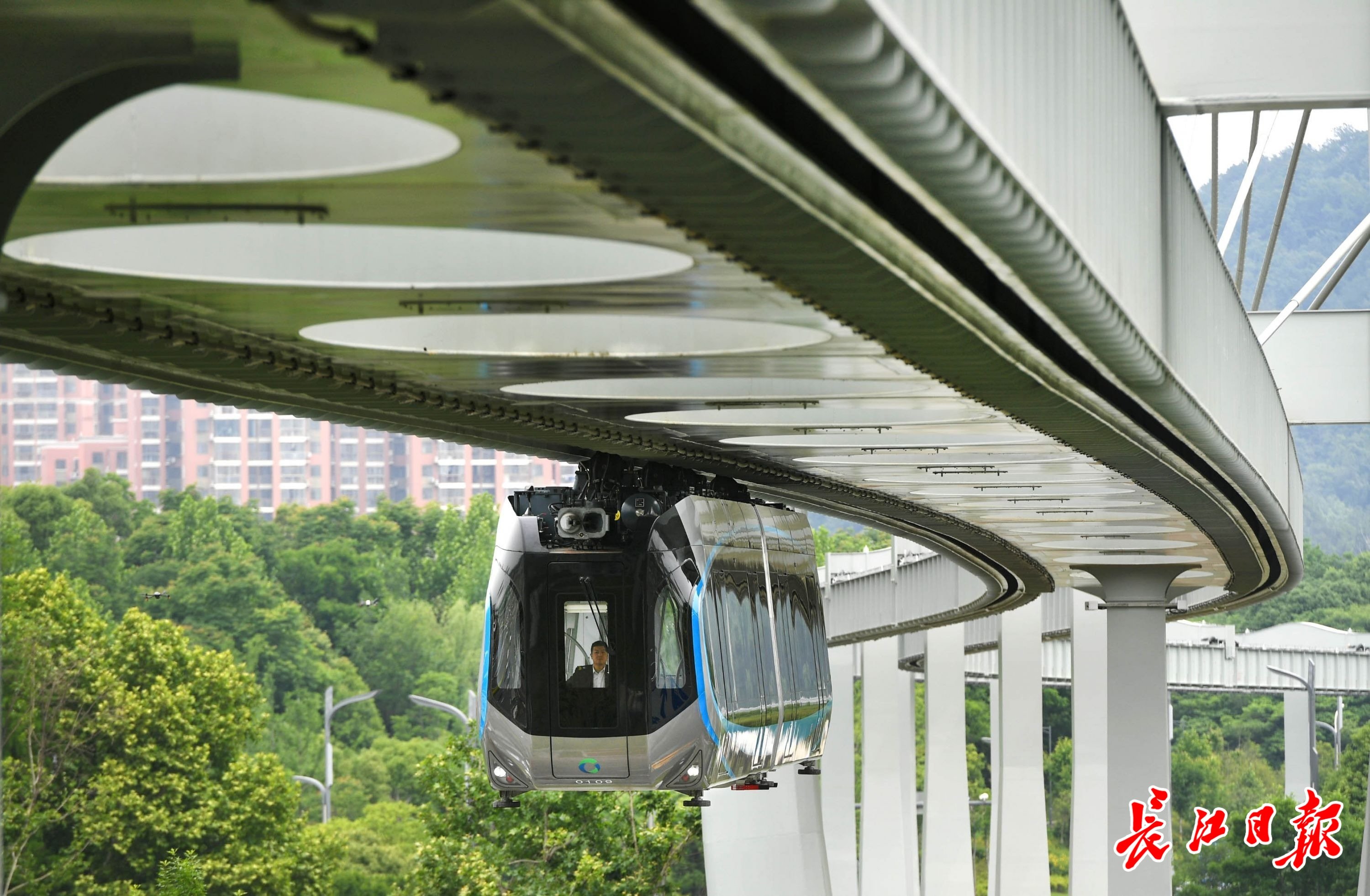 “光谷光子号”空轨奔驰在光谷生态大走廊。