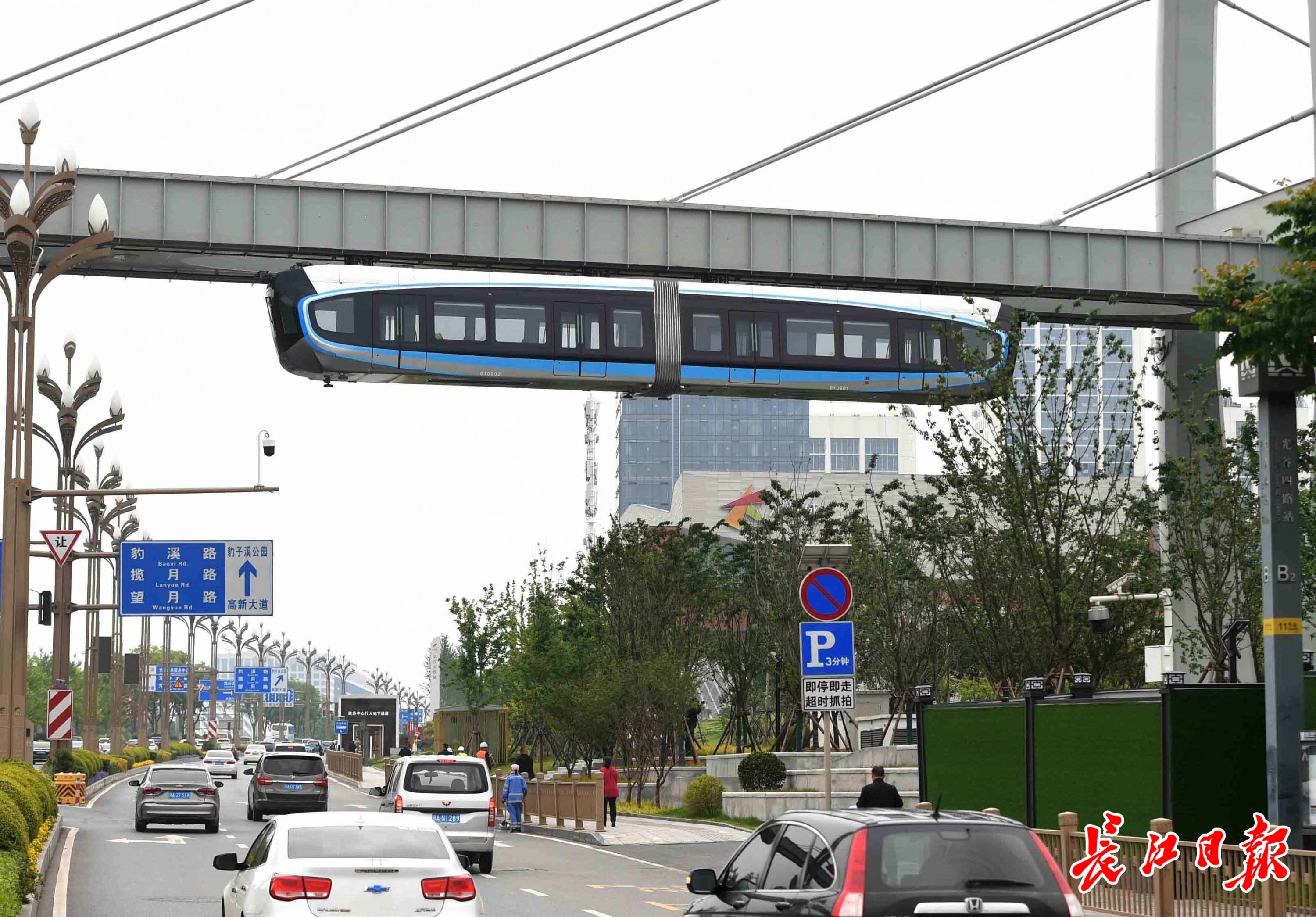 光谷空轨经过川流不息的高新大道。