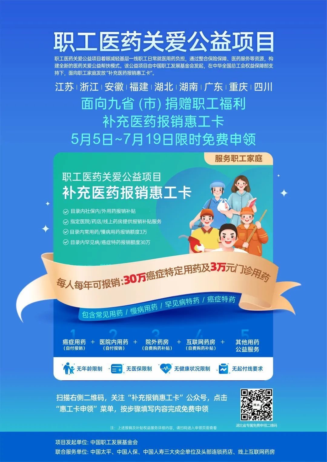 原标题:职工补充医药报销来了!湖北210万份免费申领→