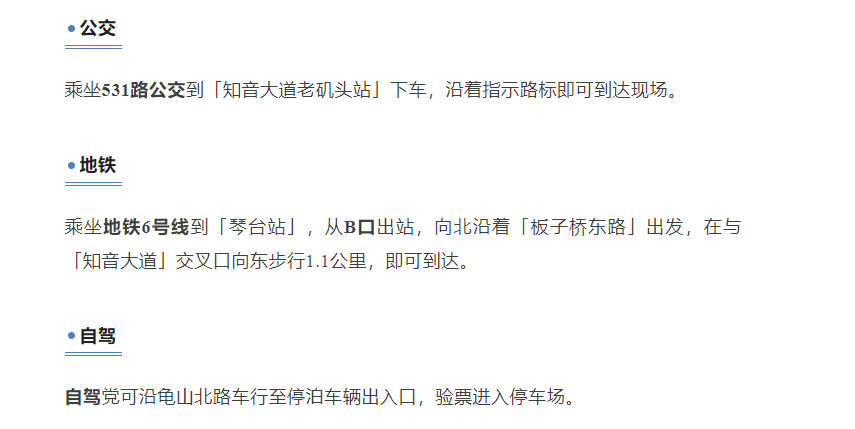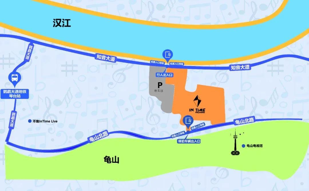 本次音乐节采取人车分流的入场模式,知音大道设有行人出入口,龟北路设有停泊车辆出入口。请各位乐迷提前规划好行程。