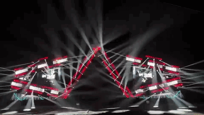 主舞台以多个几何造型组成,左右LED屏依次延展开来,仿佛巨大的“未来之眼”。灯光加持下,舞台炫彩夺目,carry全场,等你摇摆。