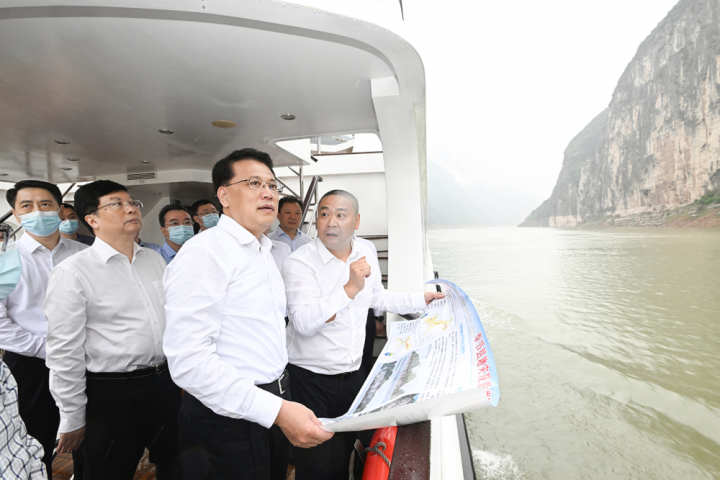 一个月前的6月7日下午,重庆市委书记袁家军,市委副书记、市长胡衡华曾在长江瞿塘峡段调研危岩带治理情况。调研中,袁家军主持召开专题会,听取市有关部门和相关县推进危岩地灾防治情况汇报。他当时指出,要在摸清风险隐患底数上迅速行动,加强全方位摸排,强化分类管理,抓好动态更新,建立隐患底数清单,夯实危岩防治基础等。