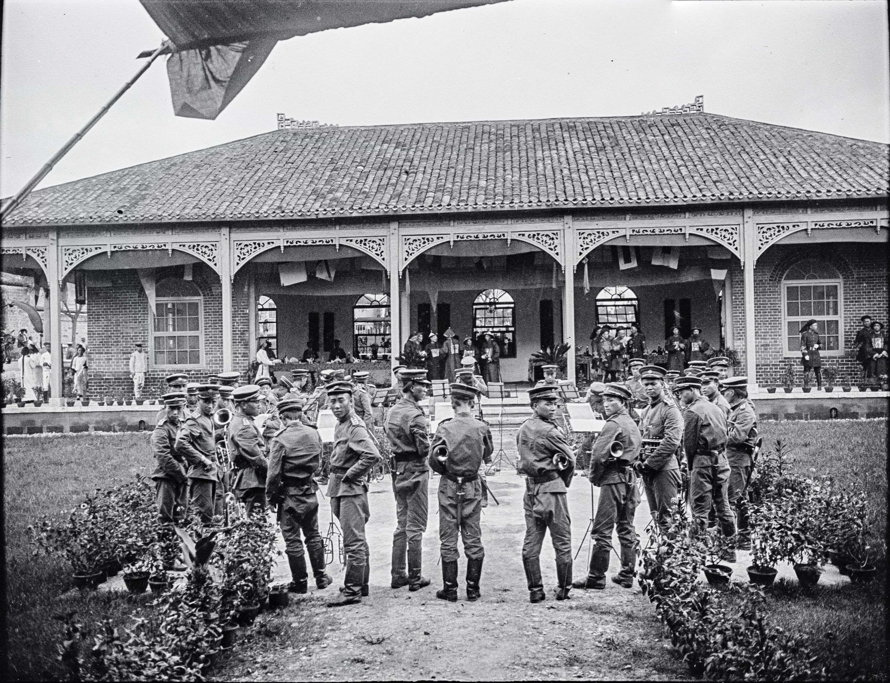 等待欢迎仪式的中国军乐团。