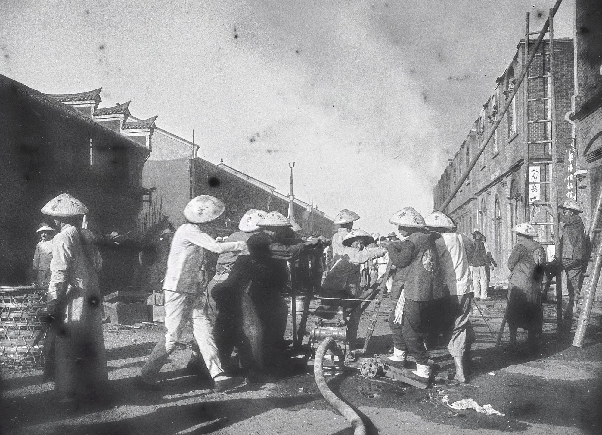正在救火的汉口消防队。