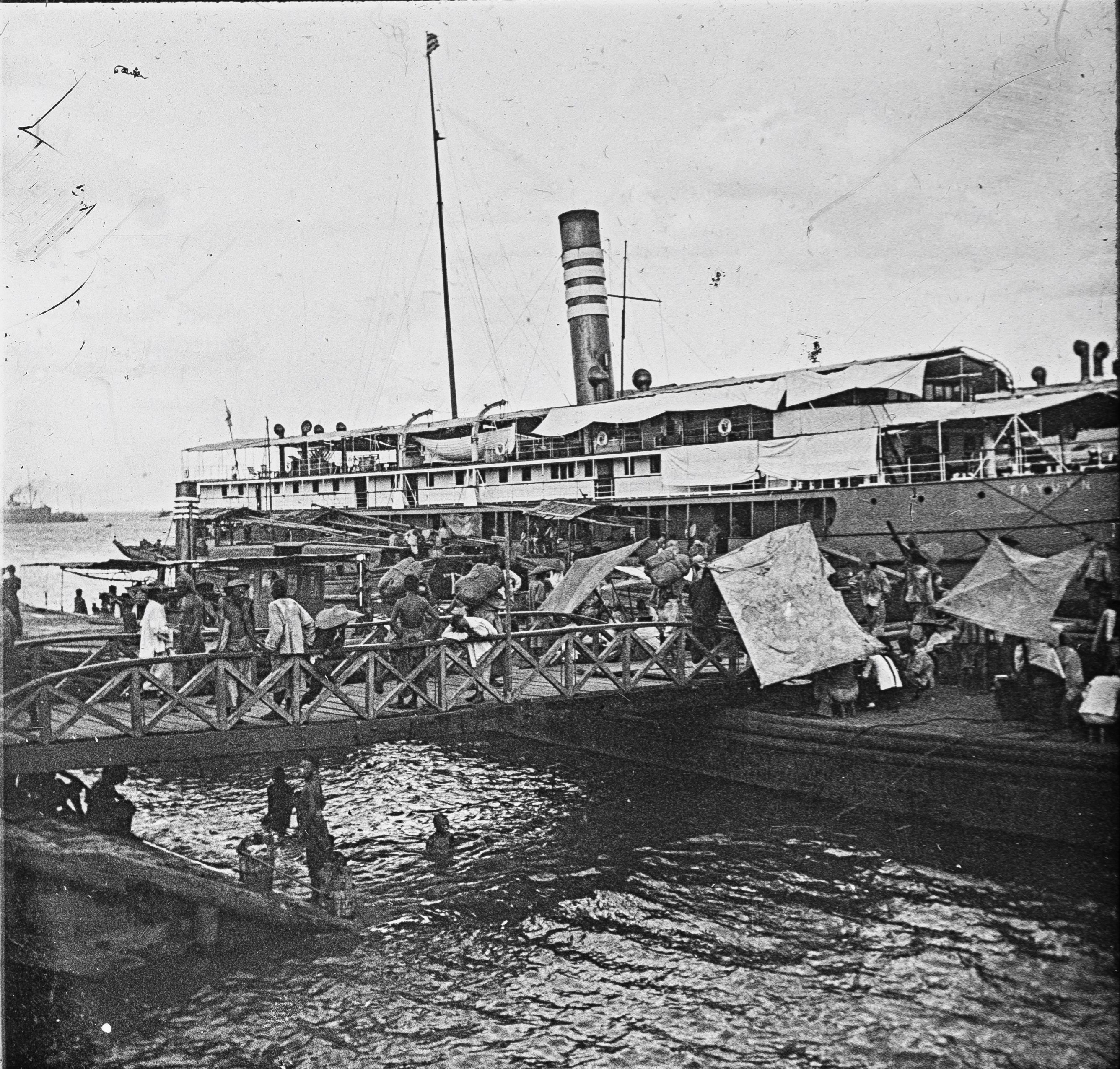 停靠在汉口码头上的轮船。