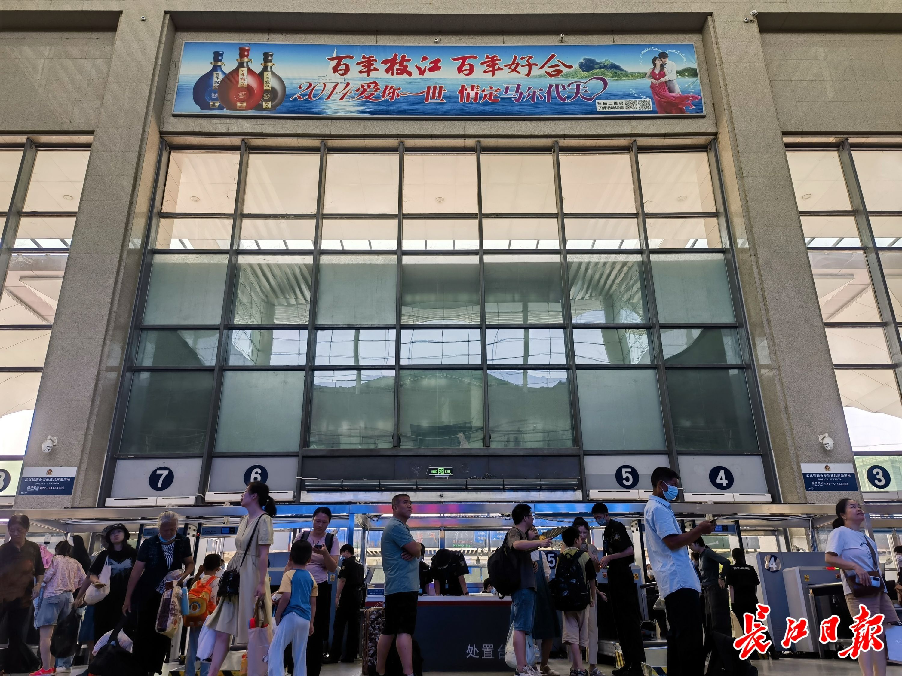 武昌火车站内的“2014爱你一世”广告。记者邓小龙 摄