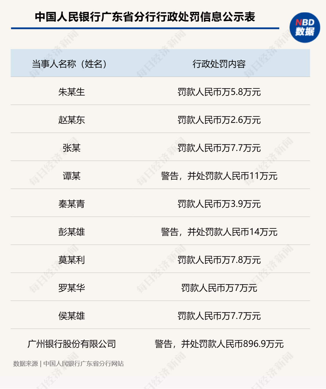 原标题:中国人民银行广东省分行披露行政处罚信息,涉及10份行政处罚
