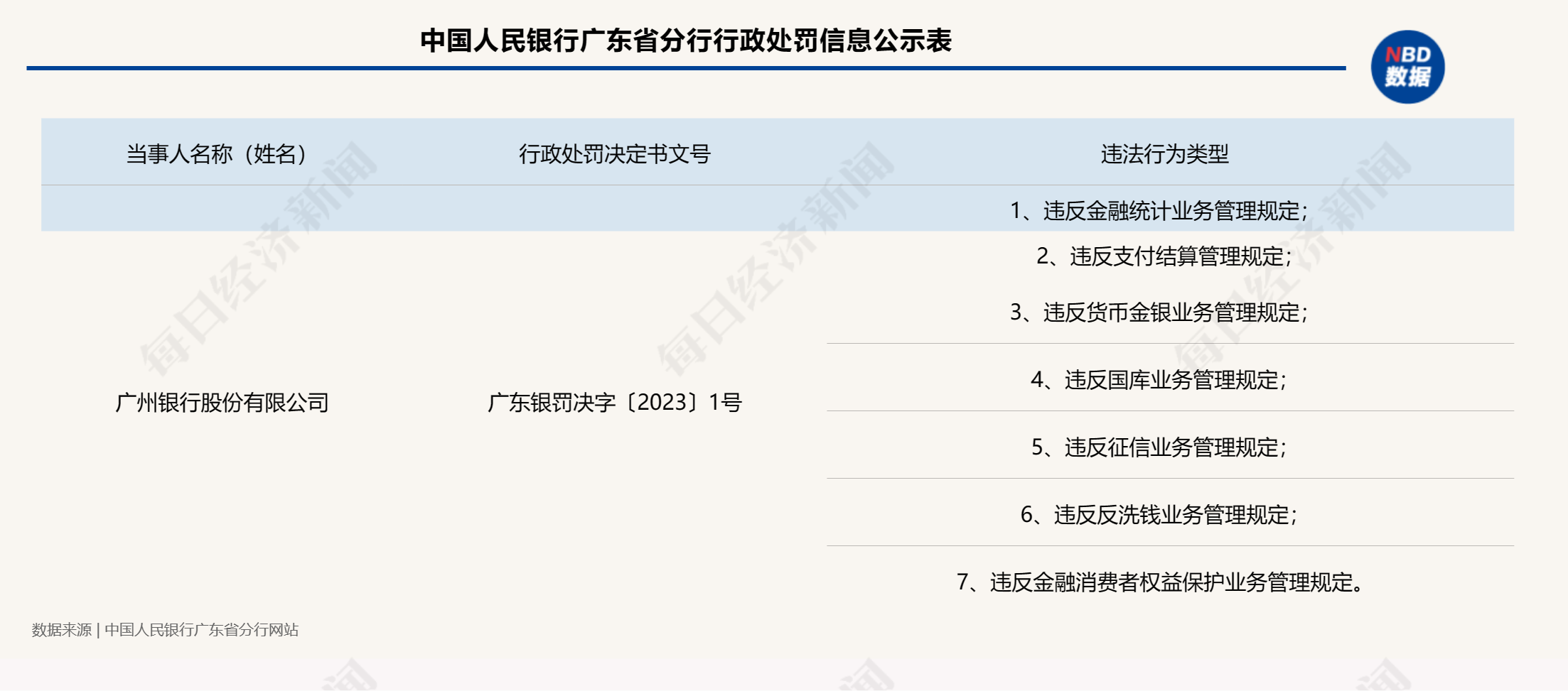 据悉,广州银行涉及违反金融统计业务管理规定、违反支付结算管理规定等7项违法行为。