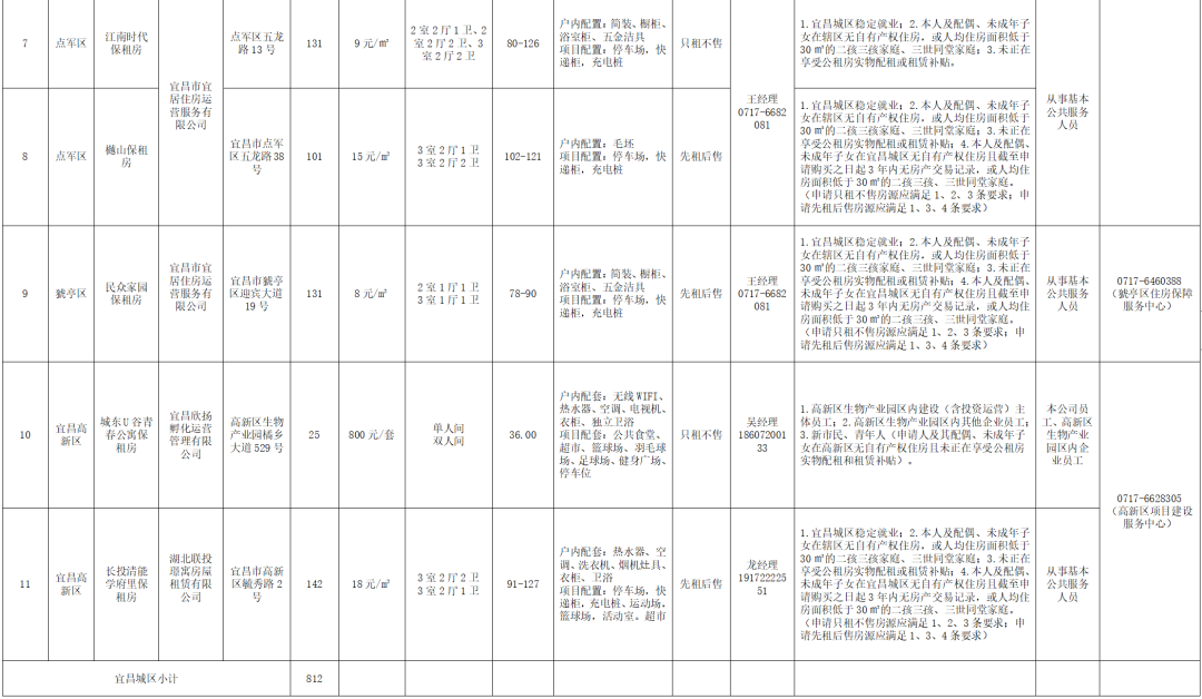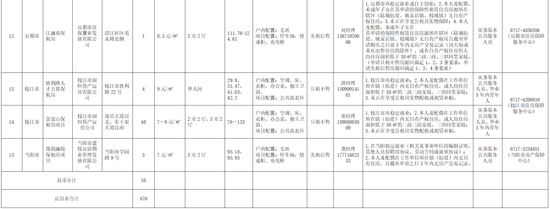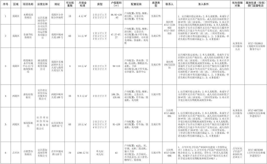 宜昌市可供给保障性租赁住房房源信息表