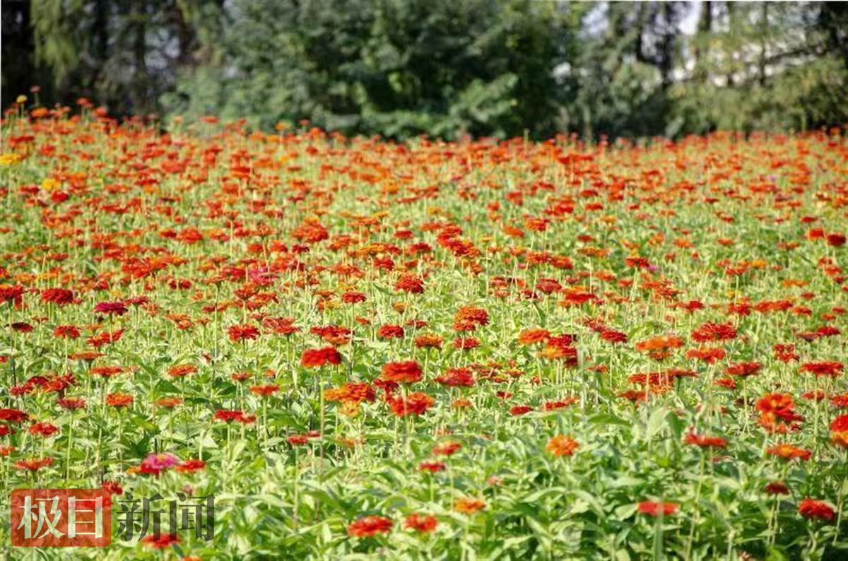 11月1日,走进位于武汉市东西湖区新城十一路和凌云路交汇处,这里有一座小花园,花开成海、色彩斑斓,约22亩的百日草花正在盛开,绚烂如画。