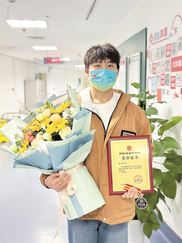 2020年18岁生日时,刘彬完成了首次献血,了解到造血干细胞是血液病患者生的希望,他当即报名加入中华骨髓库。