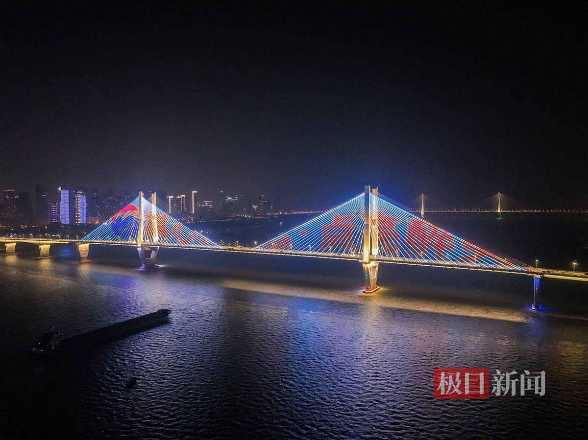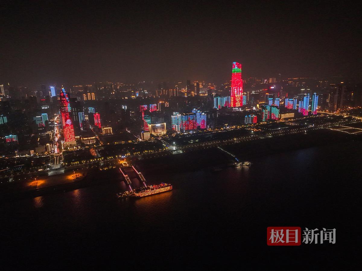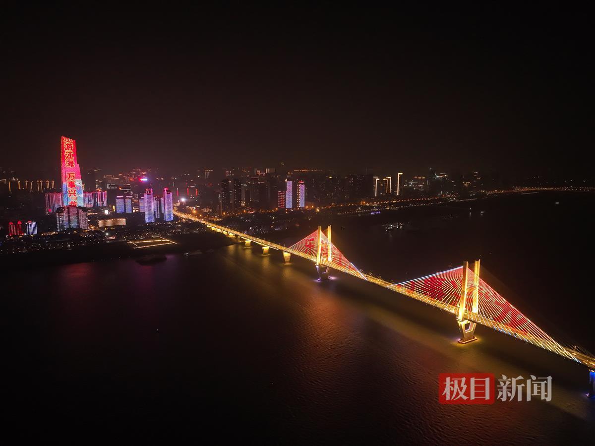 2023年12月31日晚,2024年武汉长江灯光秀元旦特辑闪耀两江四岸,由建筑、桥体、山体和趸船码头共同组成的“万里长江第一屏”营造出温馨的跨年氛围。