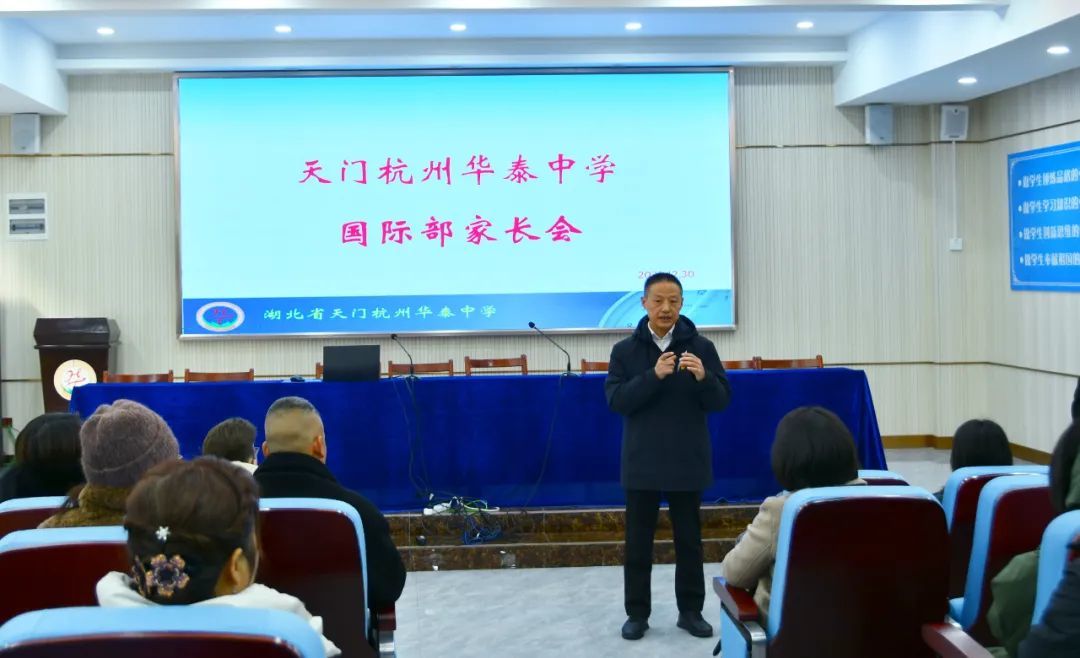 王庆中校长代表学校对参加国际部家长会的家长们表示衷心地感谢,真诚地赞美国际部孩子自信、阳光、大方、有灵气。华泰中学开办国际班的核心是“为学生的成长服务”,为学生提供个性化的教育服务,把每一个学生培养成为身心健康,品行端正,学业进步,全面发展,特长突出,生活幸福的人,并拥有未来创造幸福的能力。
