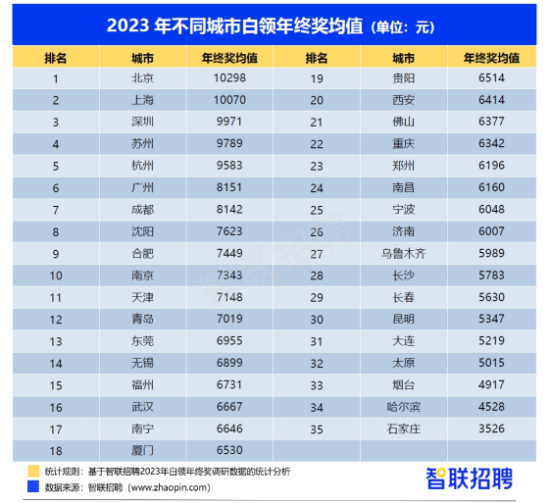 中新网湖北新闻1月31日电 (白雪)智联招聘日前发布的《2023年白领年终奖调研报告》显示,2023年武汉白领年终奖均值为6667元,位居全国城市第16位。
