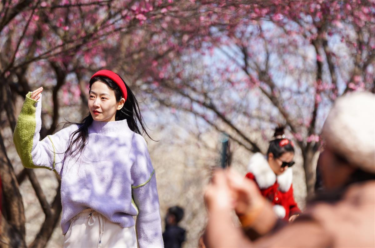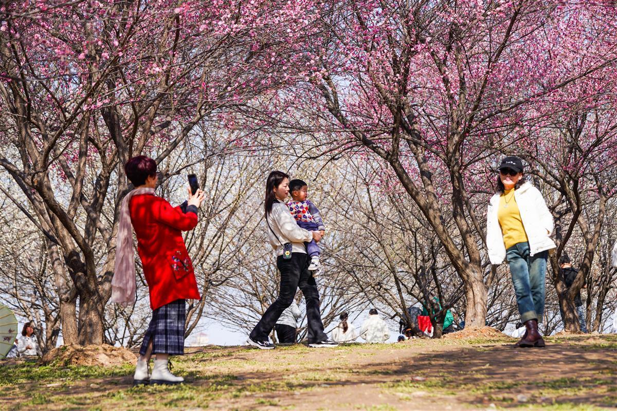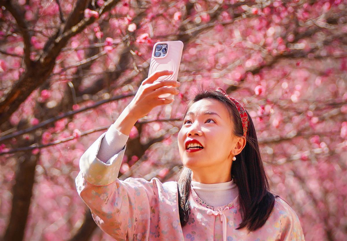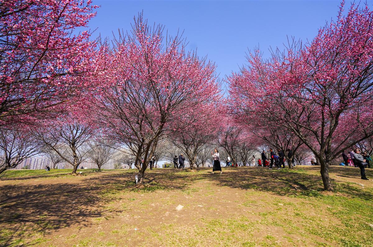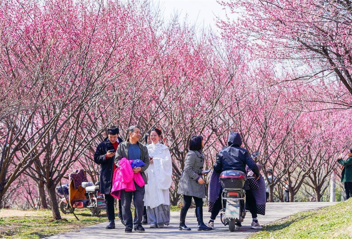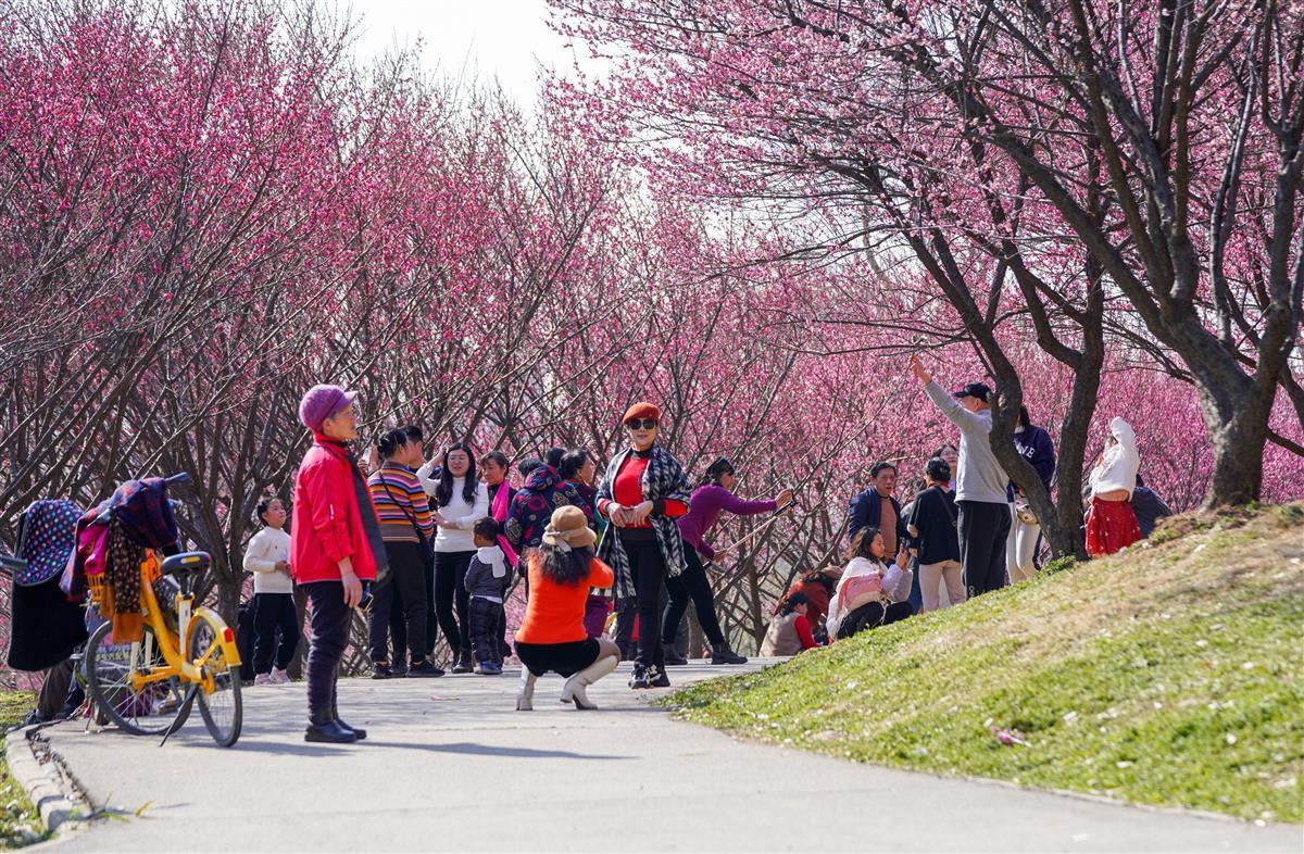 2月12日,大年初三,位于武汉市硚口区竹叶海梅花坡的数百株梅花已迎来绽放期,市民趁着大好时光,纷纷前来拍照打卡。