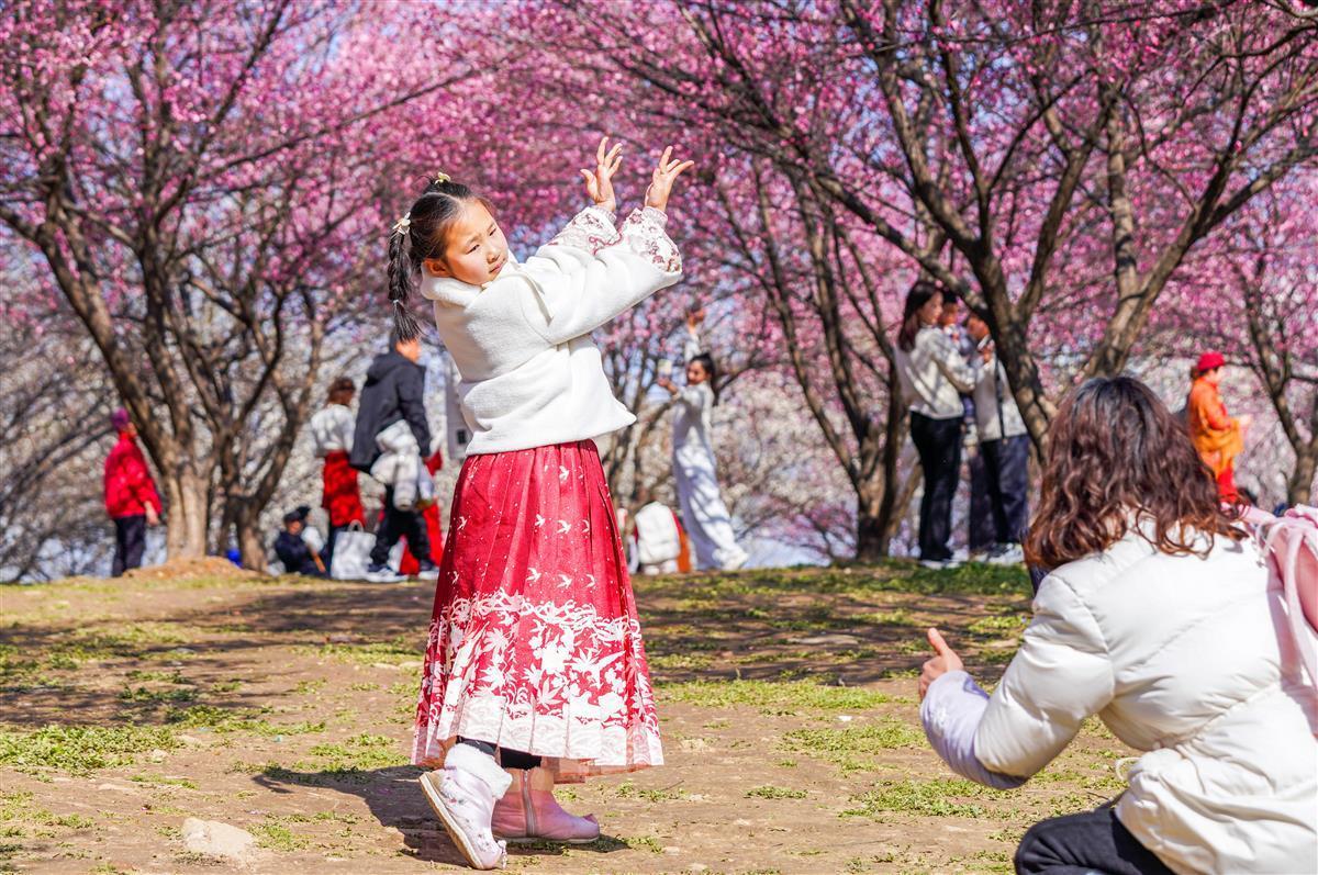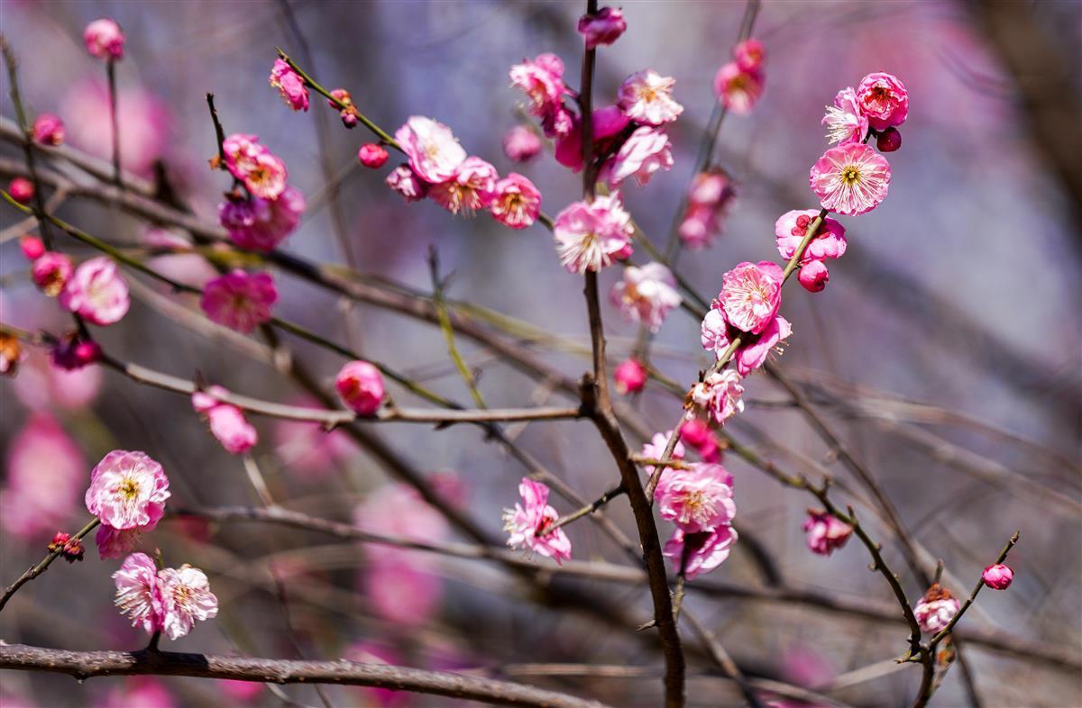 当天下午,极目新闻记者现场看到,满坡的梅花已几近盛花期,在暖阳的照耀下,显得格外艳丽,置身其间宛如童话世界。前来赏梅的市民及游客穿梭在粉、白、红三色叠加的花海中,拿着手中的相机、手机拍个不停,不亦乐乎。