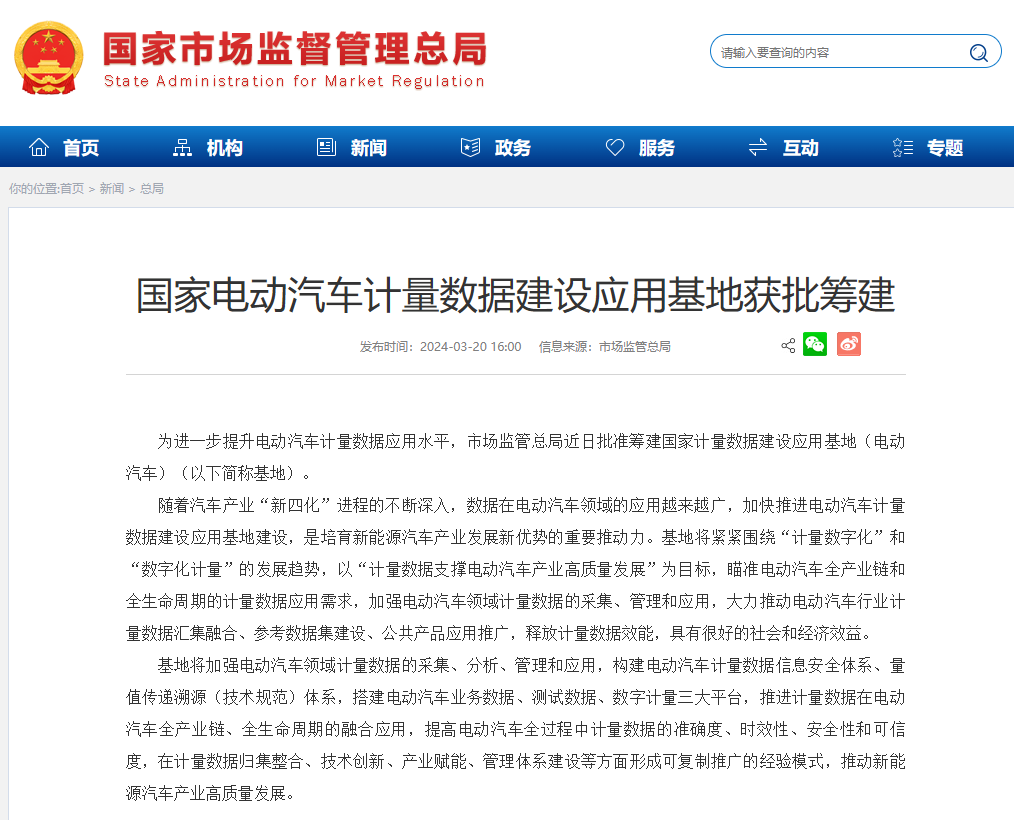 IT之家 3 月 21 日消息,国家市场监管总局日前发布公告,批准筹建国家计量数据建设应用基地(电动汽车),进一步提升电动汽车计量数据应用水平。