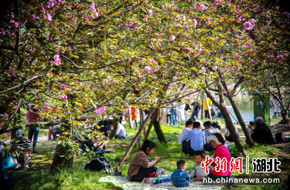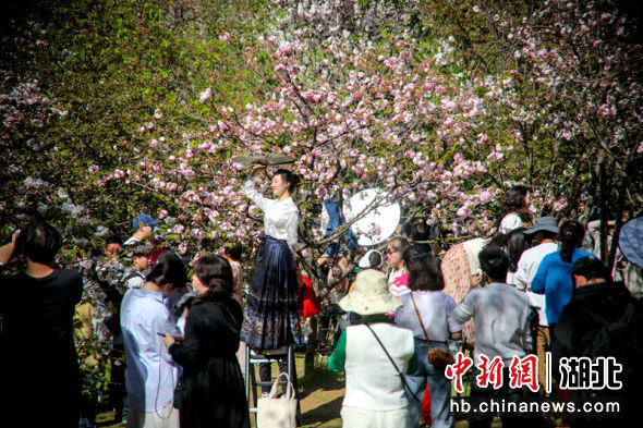 原标题:武汉东湖樱花园晚樱盛放 “国宝级”绿樱花“限时赏味”