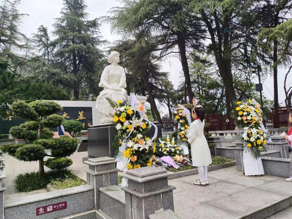 早上9时许,极目新闻记者来到位于汉阳龟山的向警予烈士陵园,看到市民志愿者正在维护秩序,并组织市民向向警予烈士像献花。除了华中农业大学的100多名学生,更多的市民是利用清明踏青的时间自发前来,不少带孩子的家长还特意为孩子准备了红领巾。市民李先生说,向警予是小时候在课本里学到的英雄人物,他利用休息时间,来烈士陵园纪念她,也想让孩子接受革命传统教育。