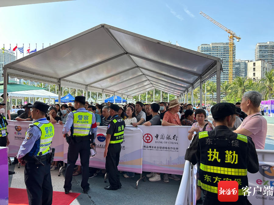4月17日上午,本届消博会迎来首个公众开放日,1号安检口现场观众排起长龙。记者 袁玉龙 摄