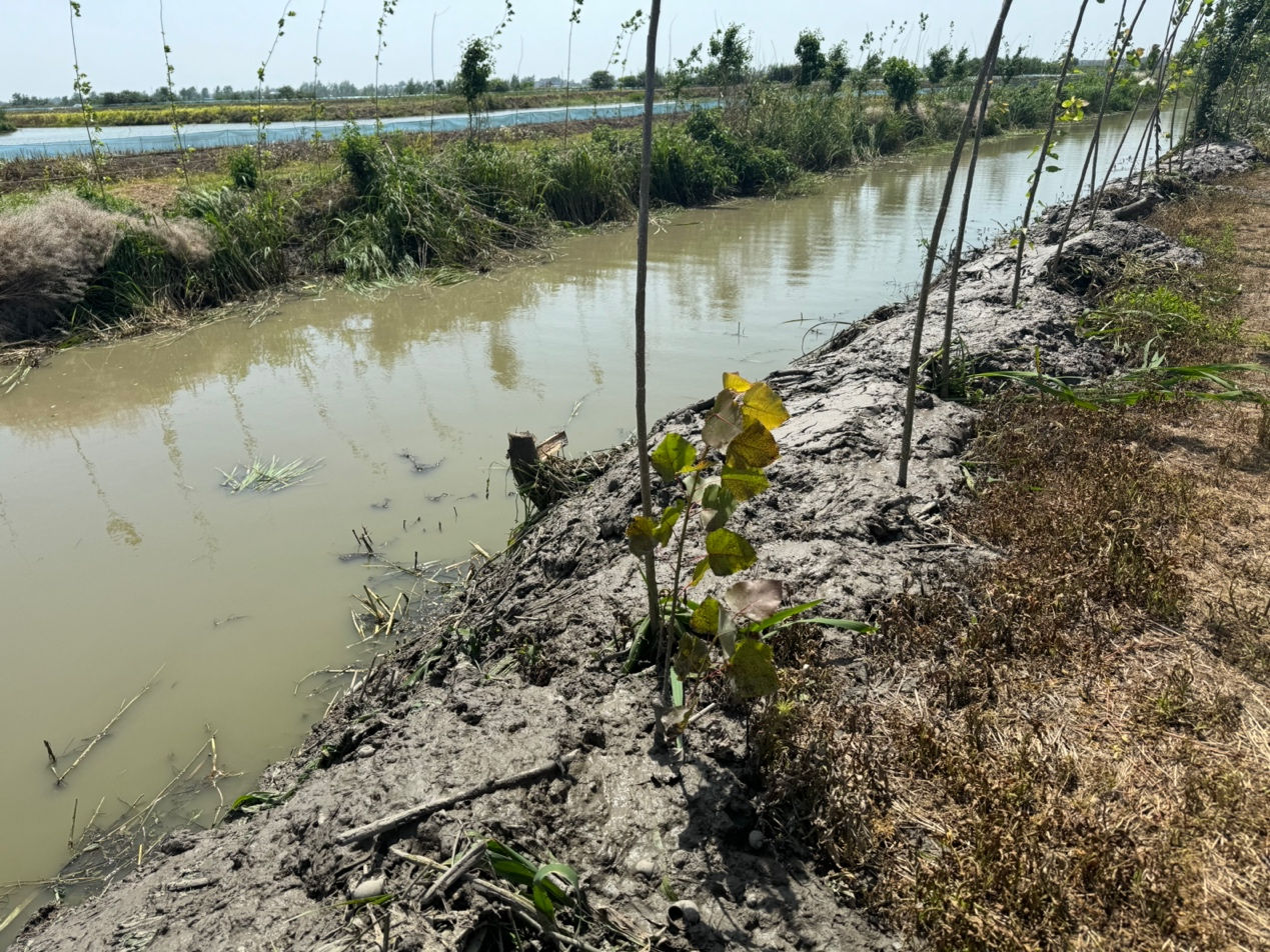 5月14日,荆州监利市网市镇,畜禽养殖场旁排灌渠内挖出的底泥散发着恶臭。