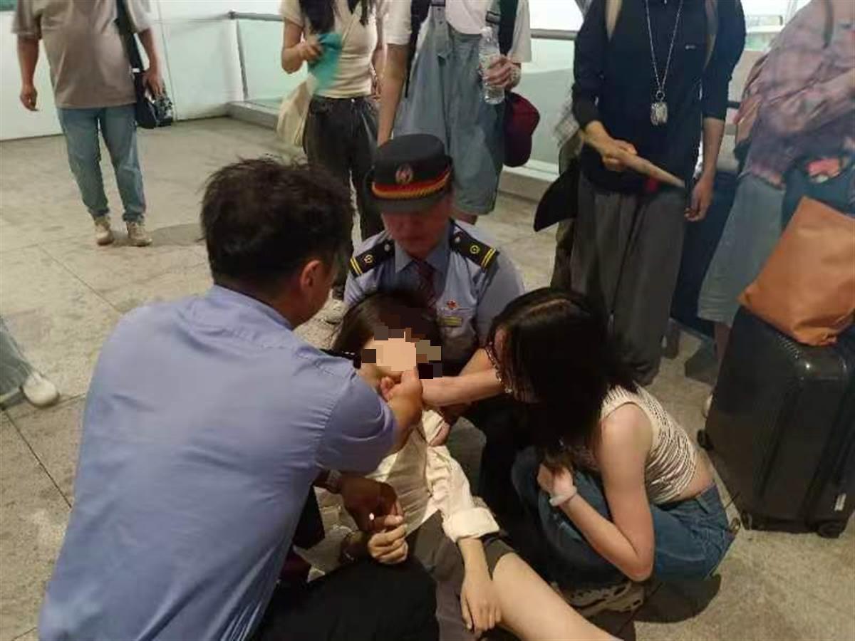 原标题:女大学生在高铁站台突然晕倒,铁路工作人员伴其左右暖心施援