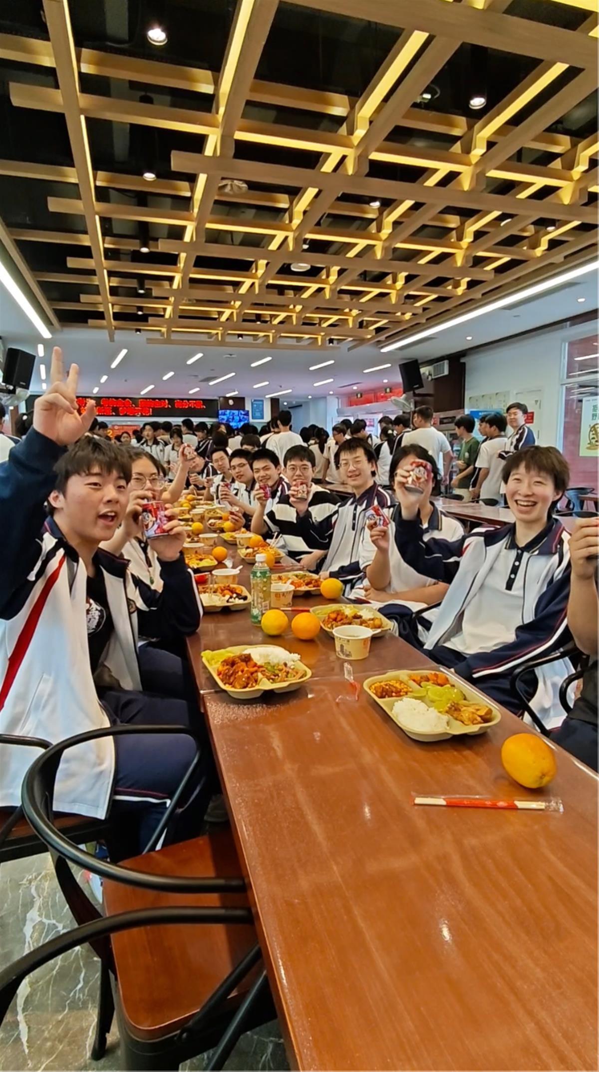一名高三学生表示:“学校推出的‘985加油套餐’很贴心,橙子和旺仔牛奶也是我的最爱,吃到这样的午餐,感觉很温暖,也能感受到学校对我们的关爱和支持。”一位学生家长表示:“学校的用心,我们都看在眼里,作为家长,我们非常感动,也更加放心孩子在学校的生活。”