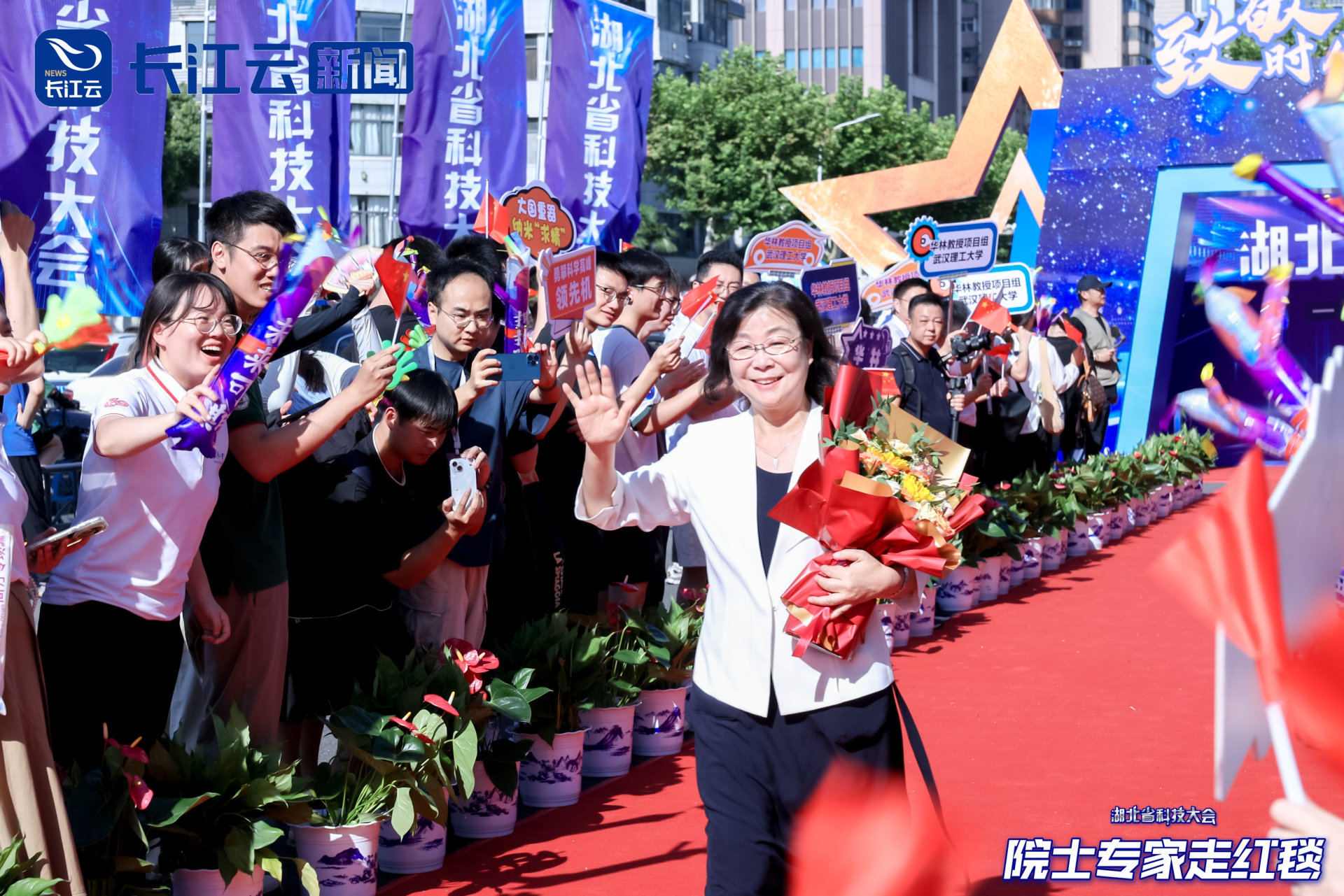 红毯上的“院士方队”阵容强大,星光熠熠。有刚刚荣获国家最高科学技术奖的武汉大学李德仁院士,他为我国从测绘遥感大国向测绘遥感强国转变做出了杰出贡献。还有去年新晋成为院士的中国科学院院士、中国科学院精密测量科学与技才创新研究院教授倪四道,中国工程院院士、华中科技大学教授陈学东,中国工程院院士、华中农业大学教授金梅林,中国工程院院士、华中农业大学教授张献龙等。