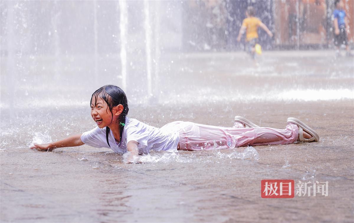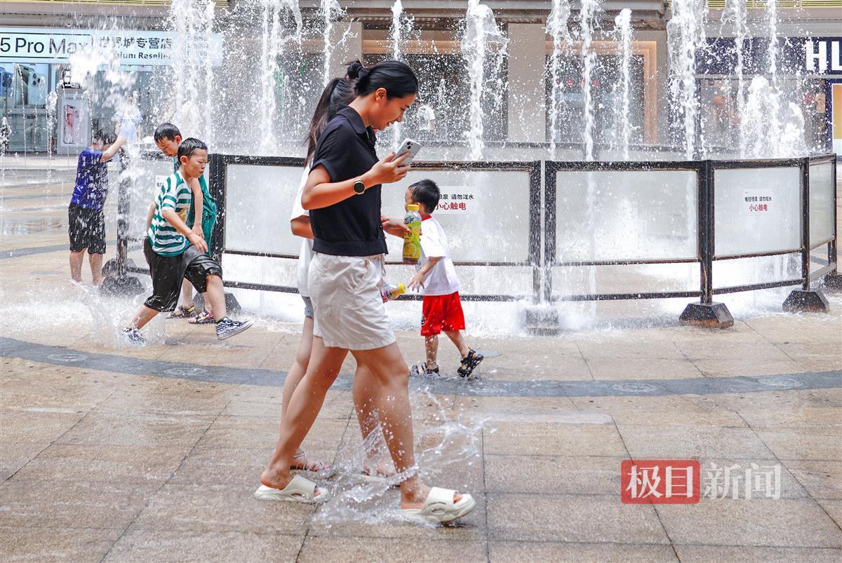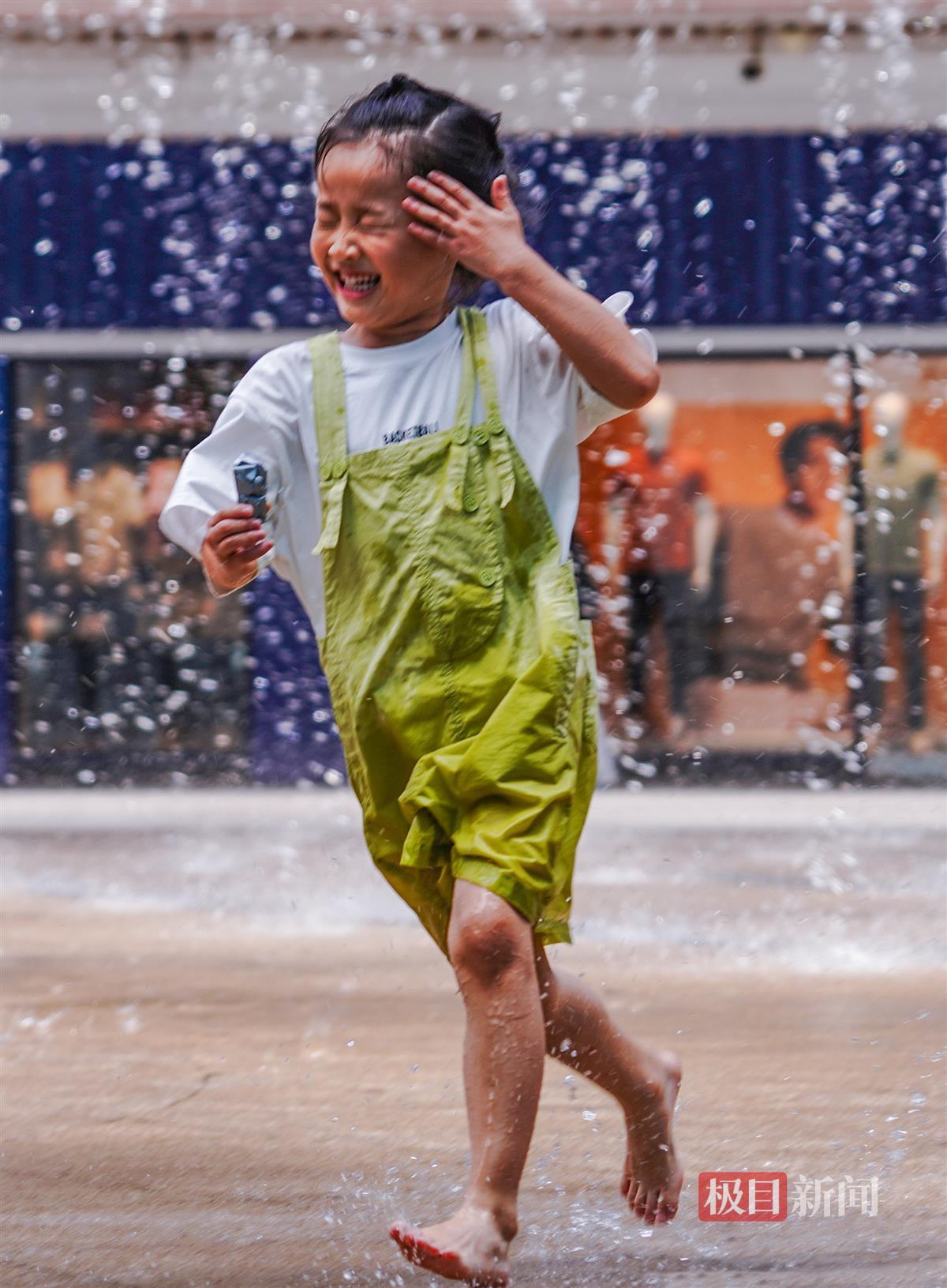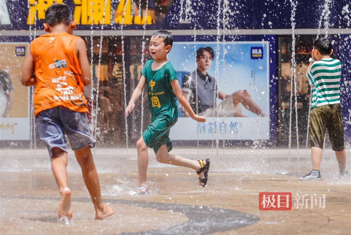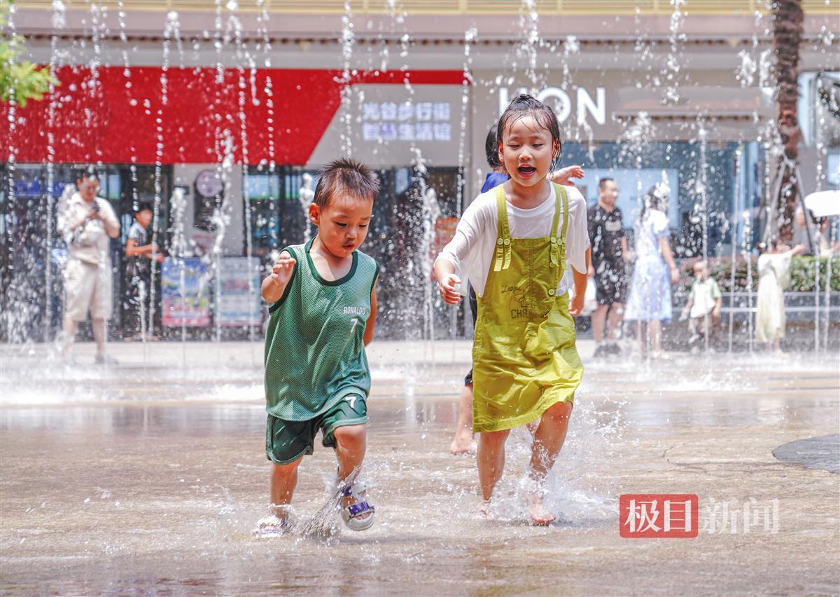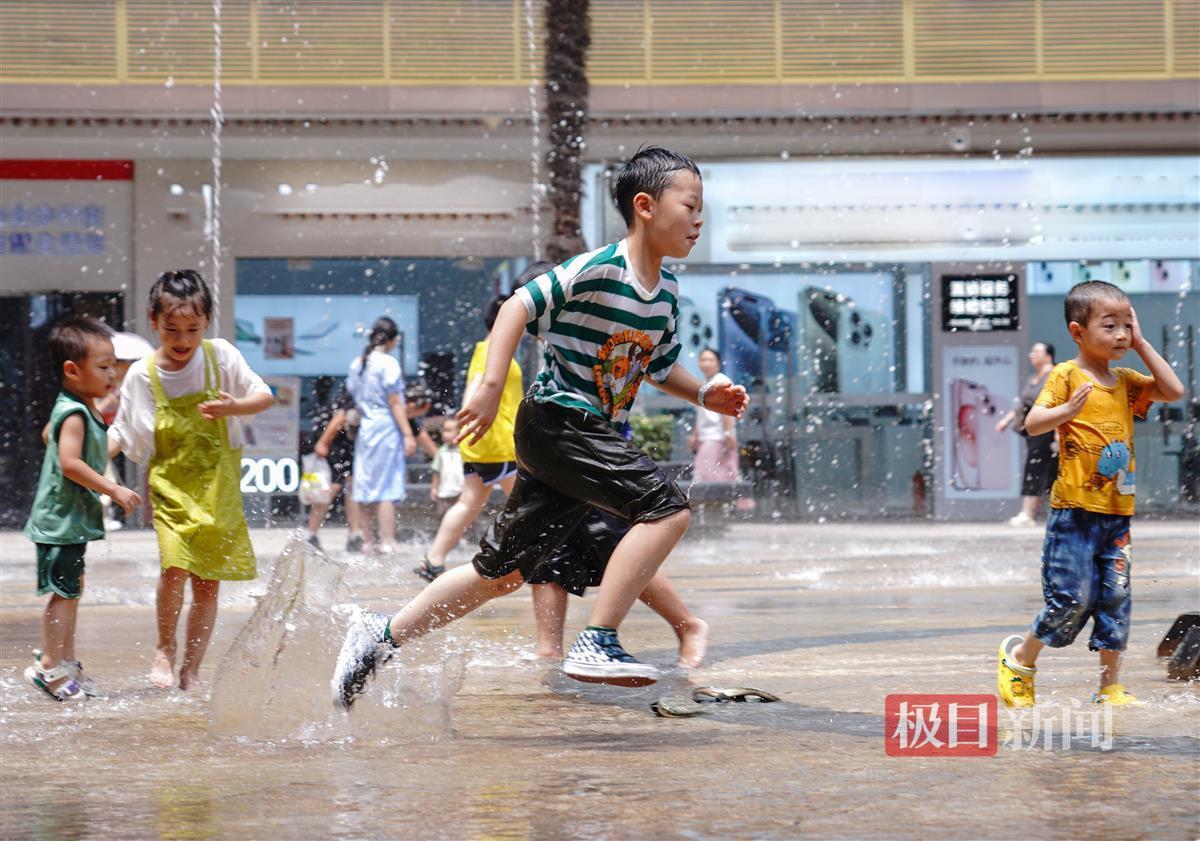 原标题:酷热高温,孩童喷泉戏水享清凉