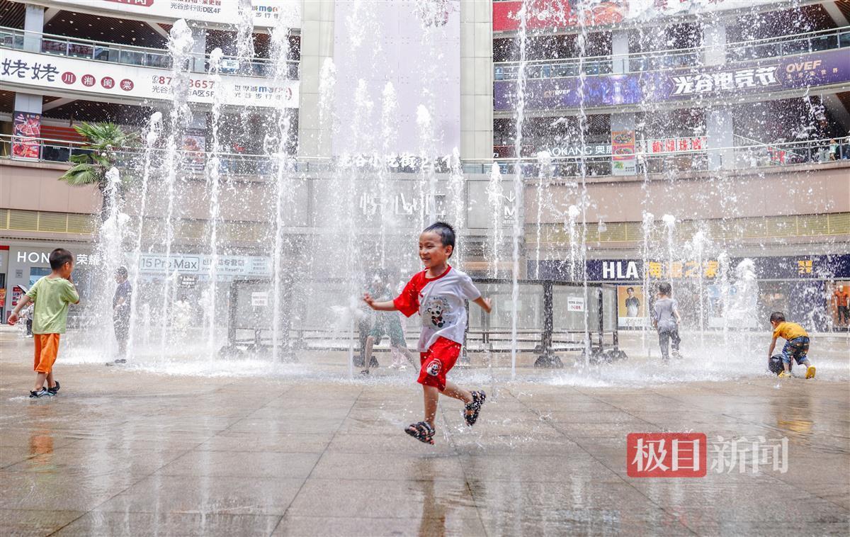 酷热的盛夏,水舞飞扬的喷泉广场,让人着迷。8月4日,武汉光谷步行街喷泉广场,每当音乐声起,孩子们就会冲向随音乐起伏的喷泉水柱中,玩得不亦乐乎。