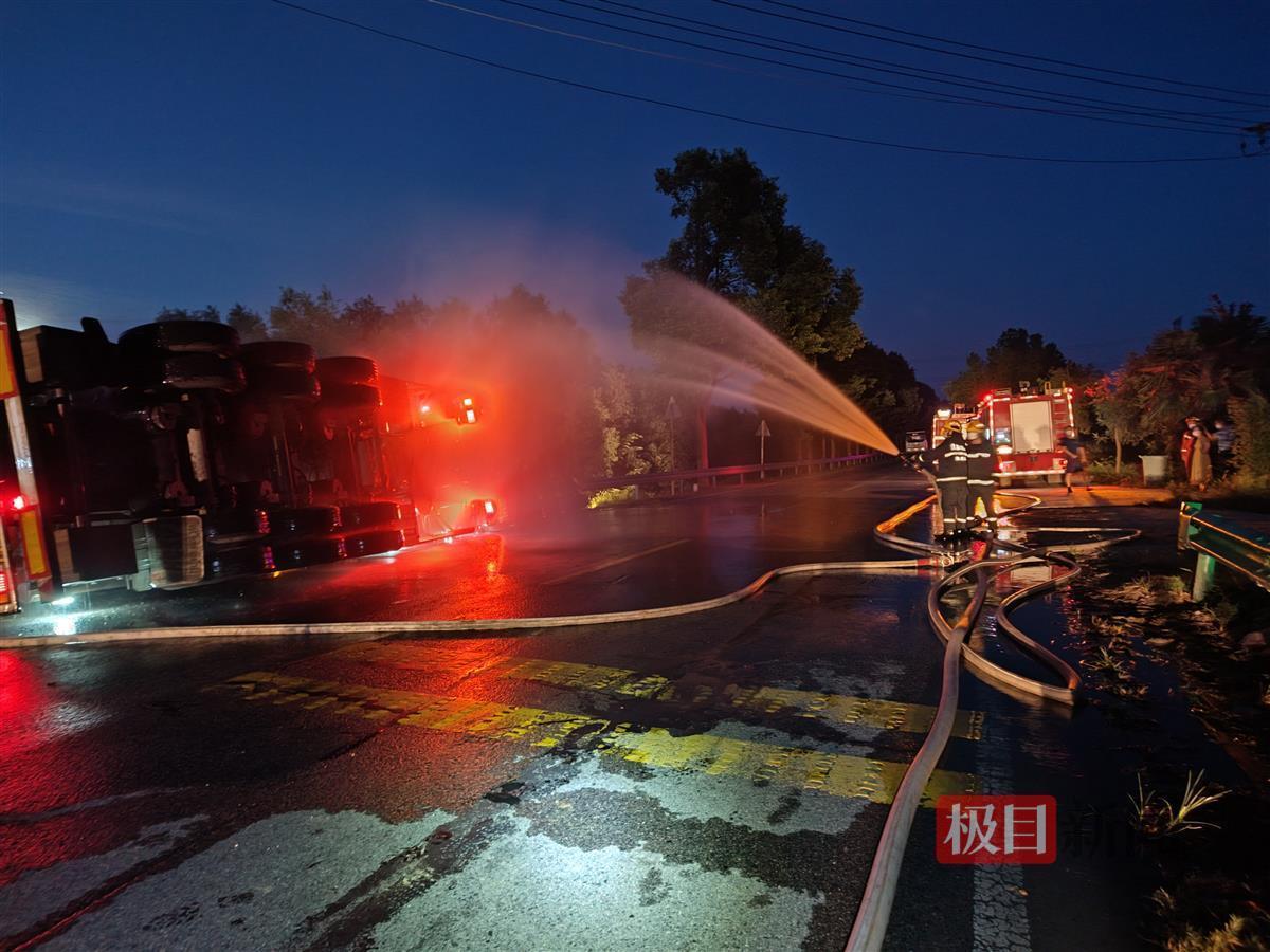 2024年8月12日凌晨,在武汉市新洲区G318国道凤凰镇陈添奇村段,一辆实载约33吨甲醇的重型半挂牵引车发生侧翻。武汉消防紧急调派消防员赶赴现场处置。