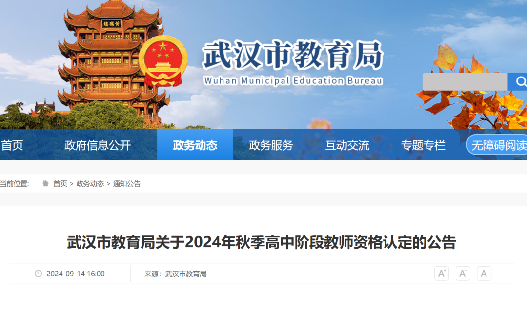 根据湖北省教师资格管理办公室《关于做好2024年我省中小学教师资格制度实施工作的通知》《湖北省2024年中小学教师资格认定有关事项公告》要求,结合我市实际,现将2024年秋季高中阶段教师资格认定的有关事项公告如下: