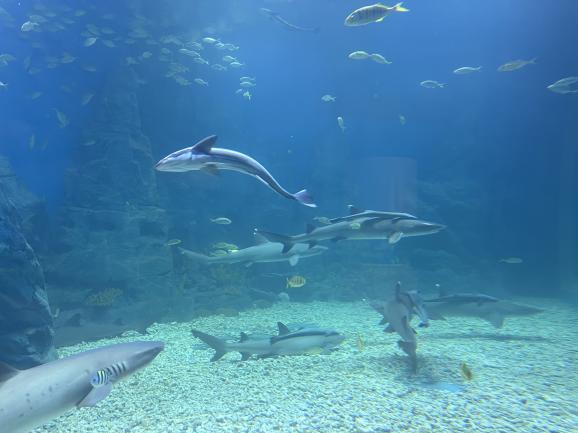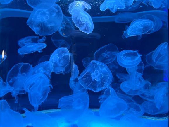 武汉天空海洋馆,是华中首家室内海洋公园,位于销品茂五楼,整体面积约6200平方米,斥资5000万打造。场馆整体设计风格简约、自然,进入馆内,会被静㴵的蓝色包围,置身于此,会获得难得的放松和宁静。